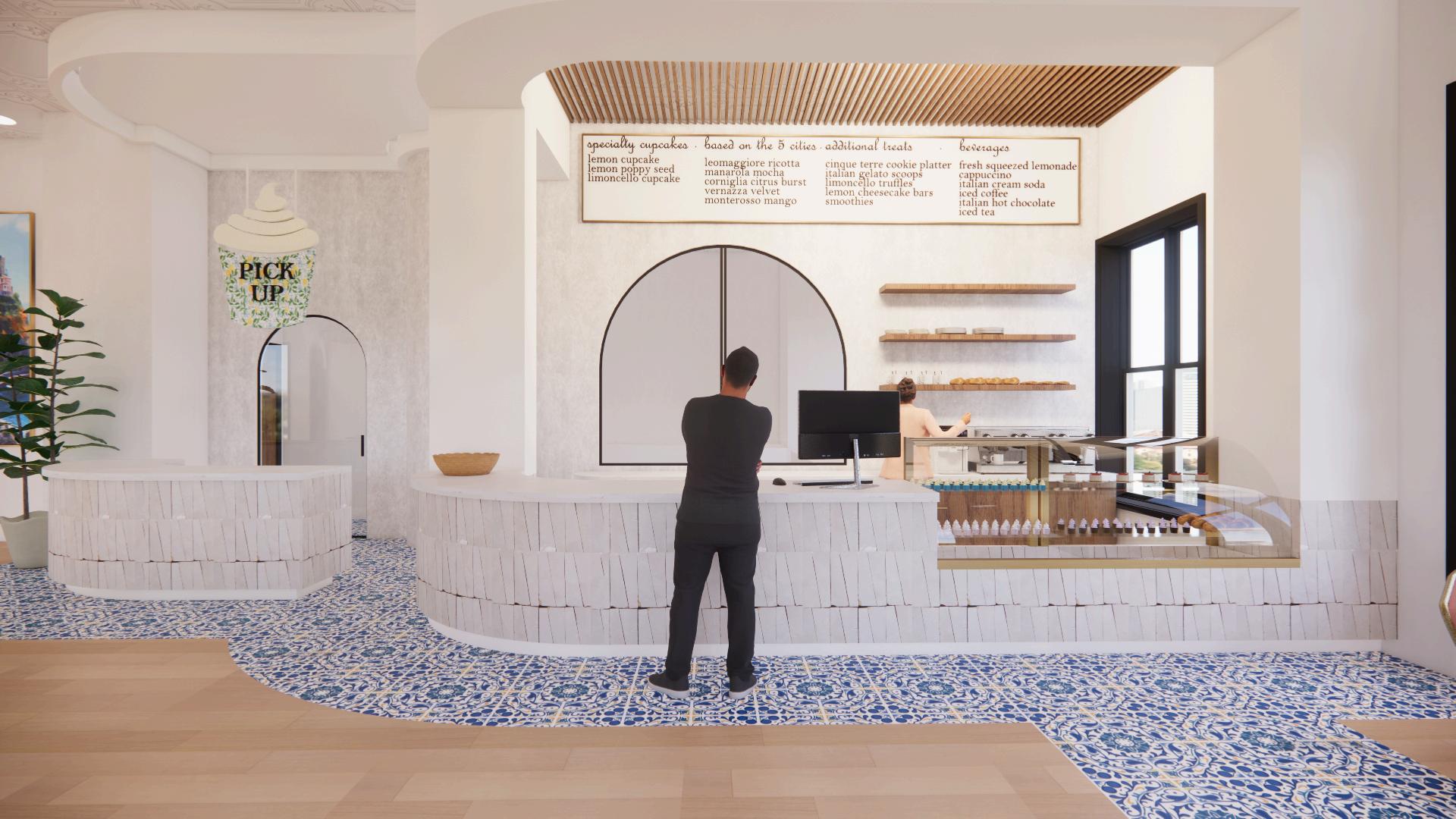 Dolce Delights Cupcakery is a fun and welcoming spot located in Brooklyn, New York. For this project, I wanted to bring in inspiration from a different culture, so I chose Cinque Terre, Italy, and their annual Lemon Festival. The design mixes bright colors, natural textures, and a fresh, cheerful vibe that feels like a little getaway by the coast. The space includes a dining area, dining bar, experiential kitchen, event space, restrooms, merchandising displays, a break room, an office, and a commercial kitchen — all designed to create a unique experience for every guest. My goal was to make Dolce Delights feel fun, unique, and full of personality, where people can come to enjoy amazing cupcakes and make memories with friends and family.
