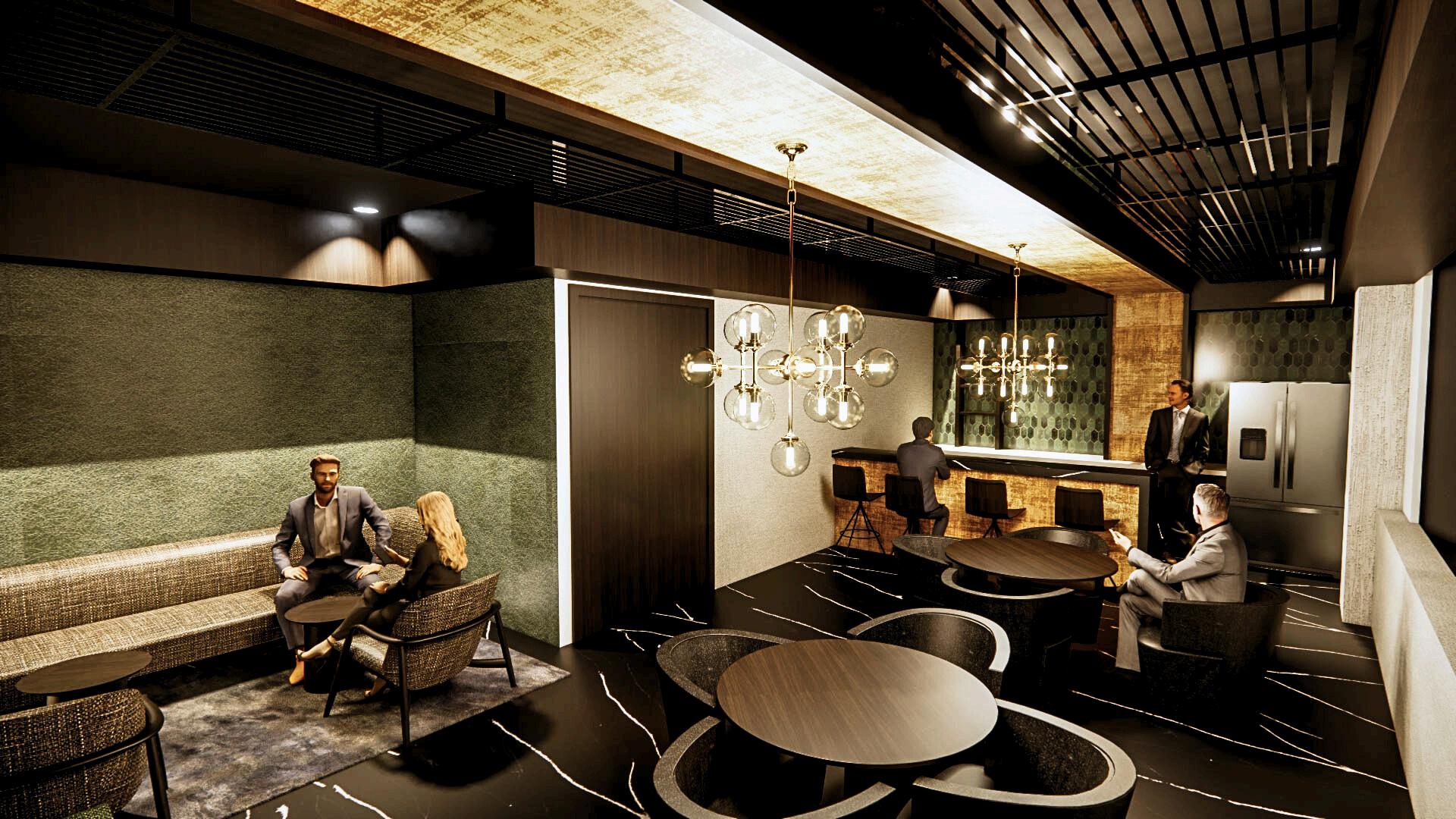 he wildcard space in this project, offering a unique and e office. Inspired by Chicago’s rich history of hidden he Speakeasy serves as a retreat where employees and ed, social setting. This space provides an opportunity to ay, fostering casual conversations, team bonding, and table, intimate atmosphere. By incorporating this space, ter and connection to Chicago’s past while supporting eativity, and human-centered design.