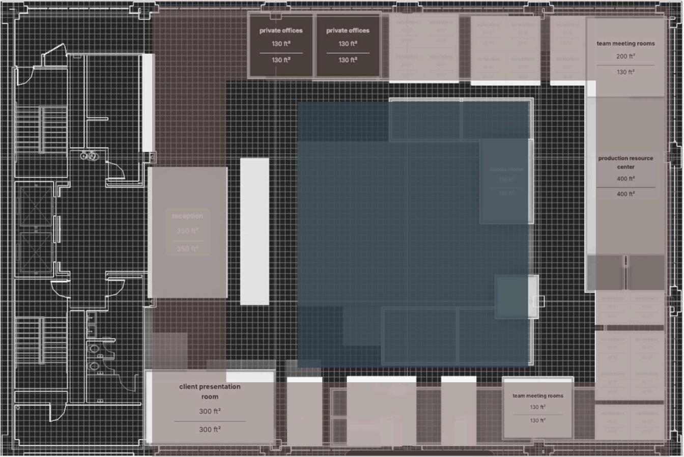 NEXT is a creative advertising agency located in the heart of Fulton Market in Chicago, IL. The design draws inspiration from the bold geometry of Chicago’s skyline and the structured grid of its streets, representing the strong connections between the city’s architecture, neighborhoods, and culture. Each area of the office ties back to this concept