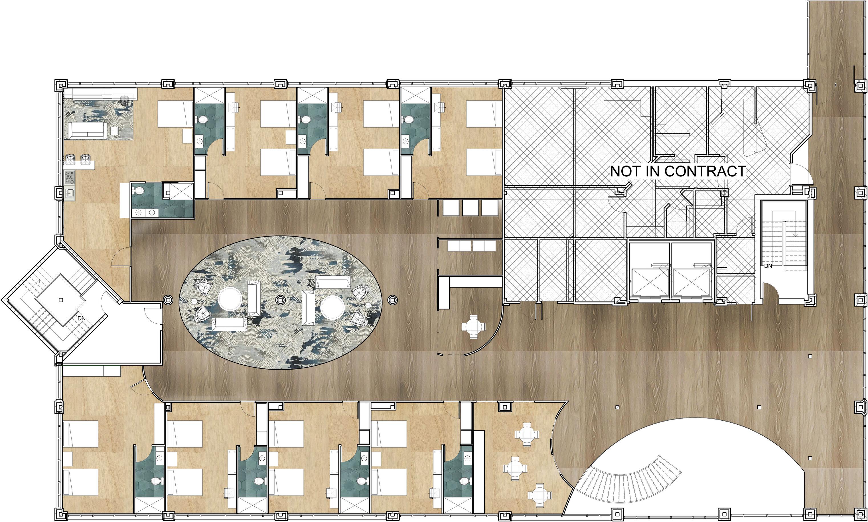 For this group project, we designed a hotel connected to a hospital in Charlotte, North Carolina. The hotel supports families and patients, creating a comforting environment inspired by the Atlantic Coastal Plain. It features two guest suite apartments for longer stays and adaptable rooms for potential hospital use. Additional spaces include a meditation room, library, chapel, counseling areas, office spaces, family room, playroom, kitchenette, and laundry on the second floor. Natural finishes and intuitive wayfinding enhance security and wellness while allowing for flexibility.