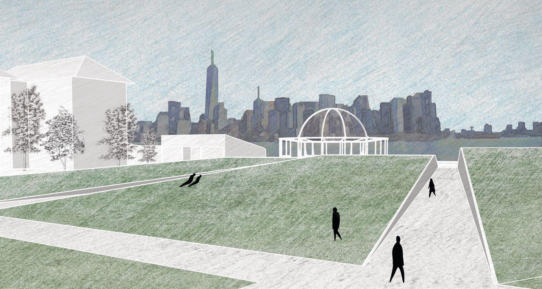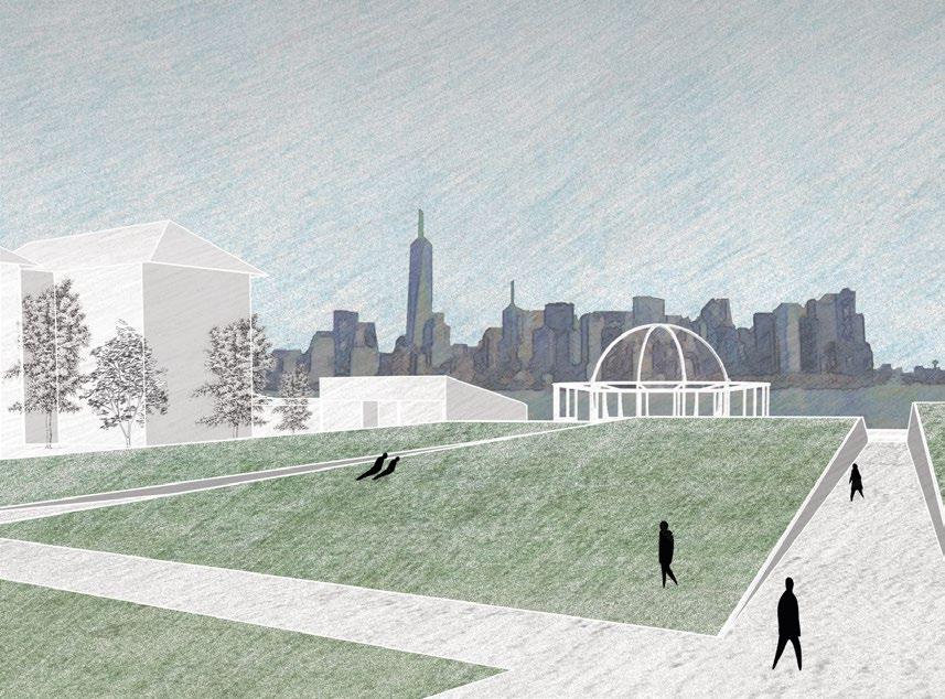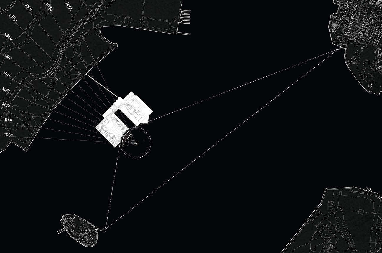 Concept site plan placing the intervention within the larger context of Ellis Island and its history