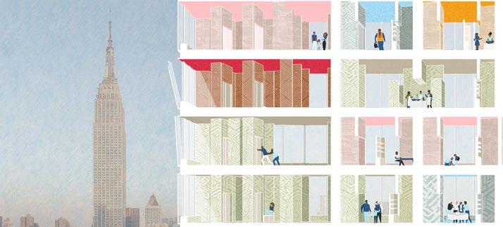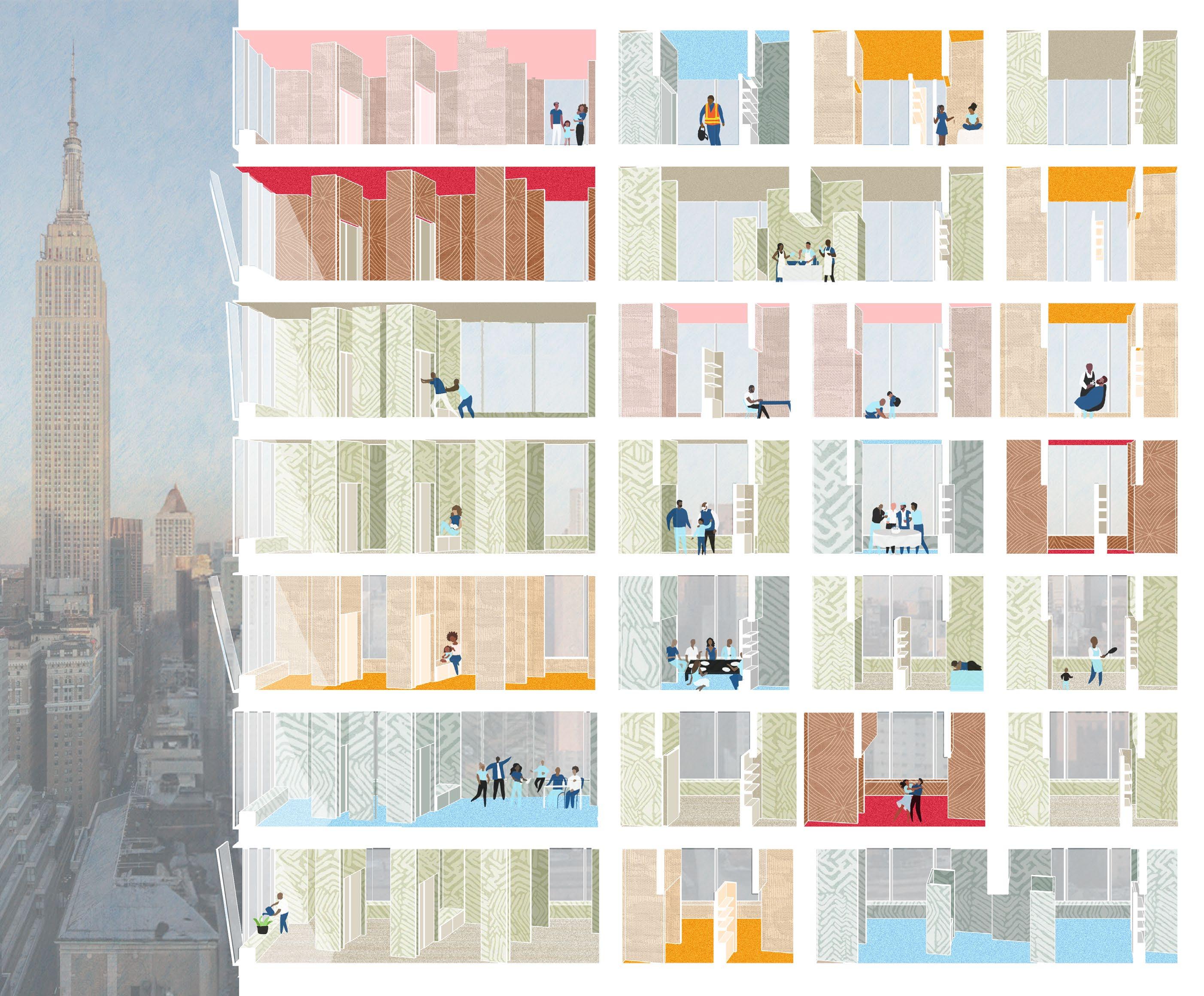 There are over 16,000 migratory service employees in the area surrounding New York City’s Penn Station and Madison Square Garden, formally called the Penn District, that commute to work each day. Considering that the area is virtually unlivable now due to noise, congestion, and traffic compounded with the lack of accessible food, education and affordable housing, the project asks “how can we make Penn Plaza suitable for affordable living for the thousands of people that occupy the space daily?”
