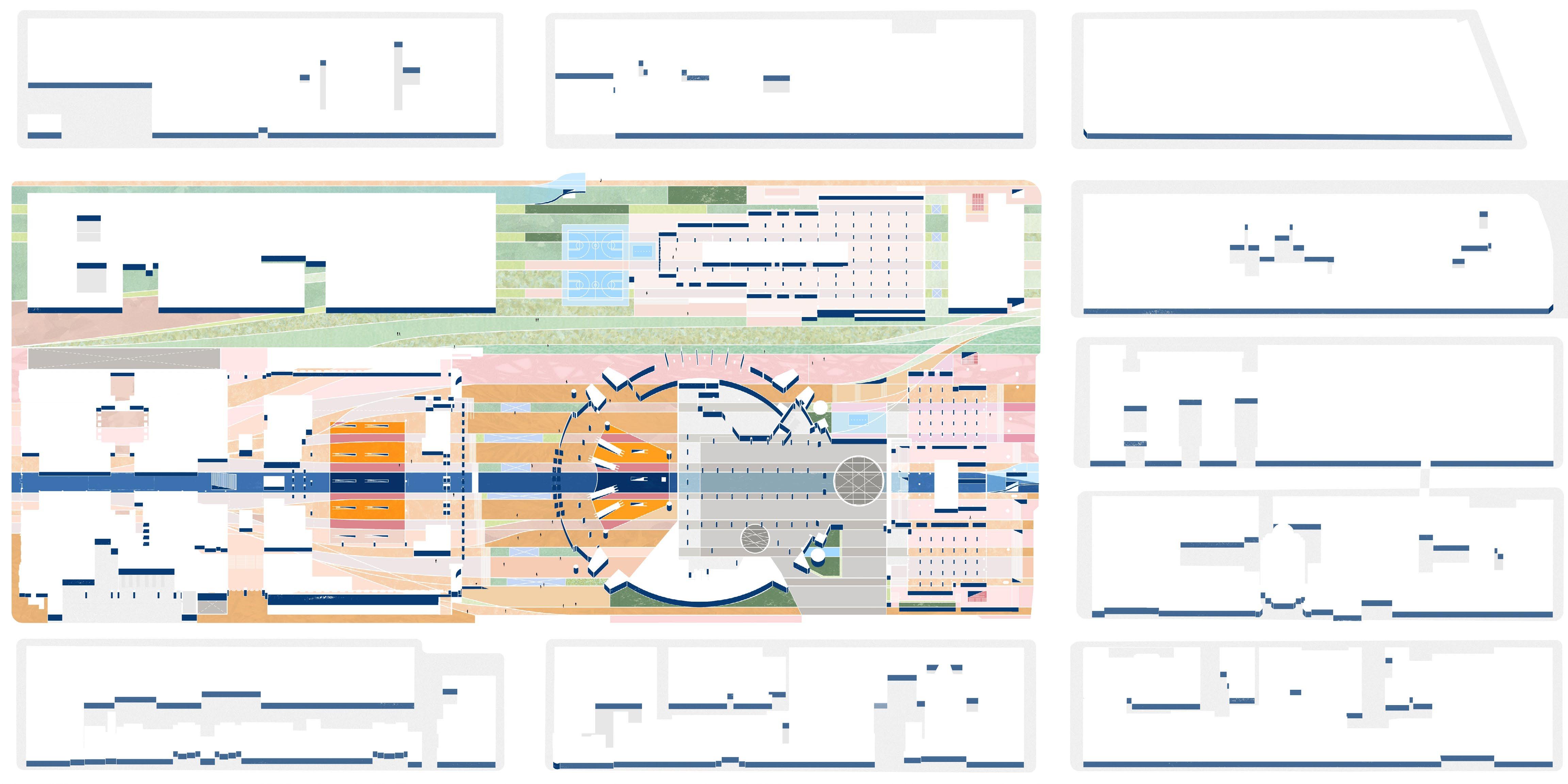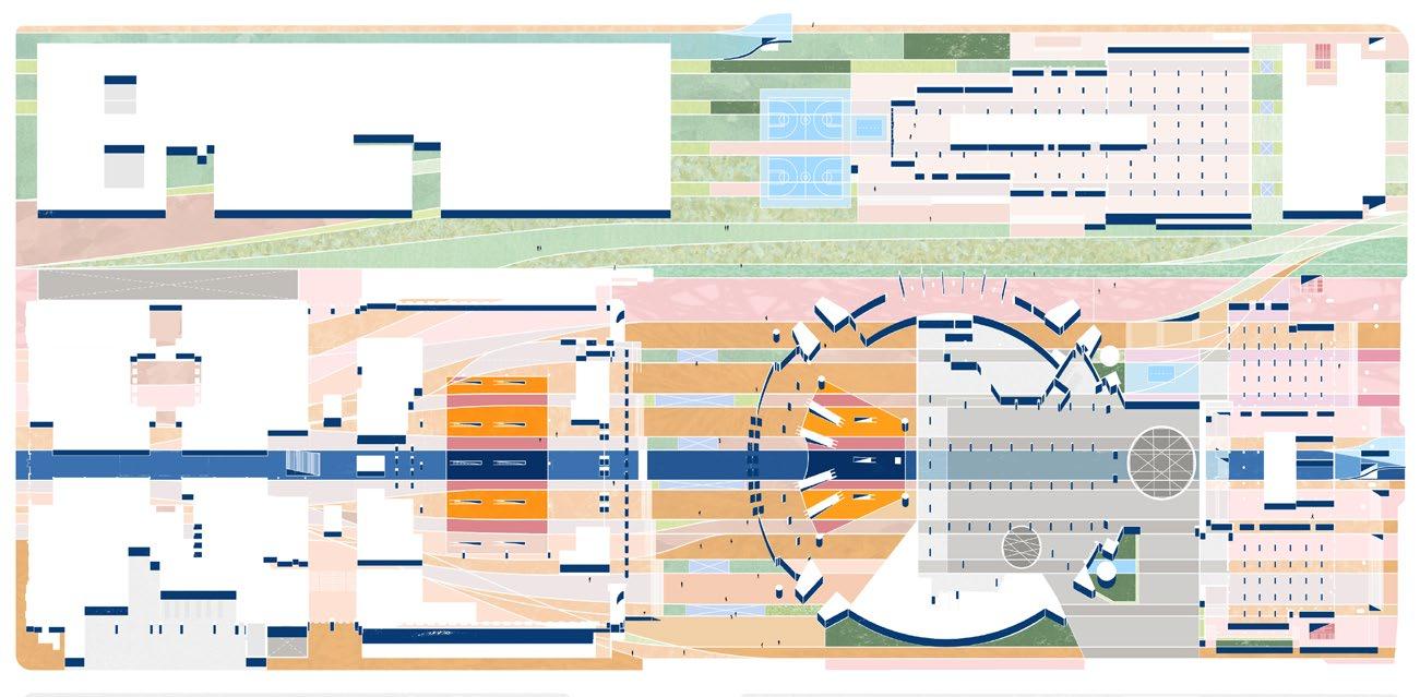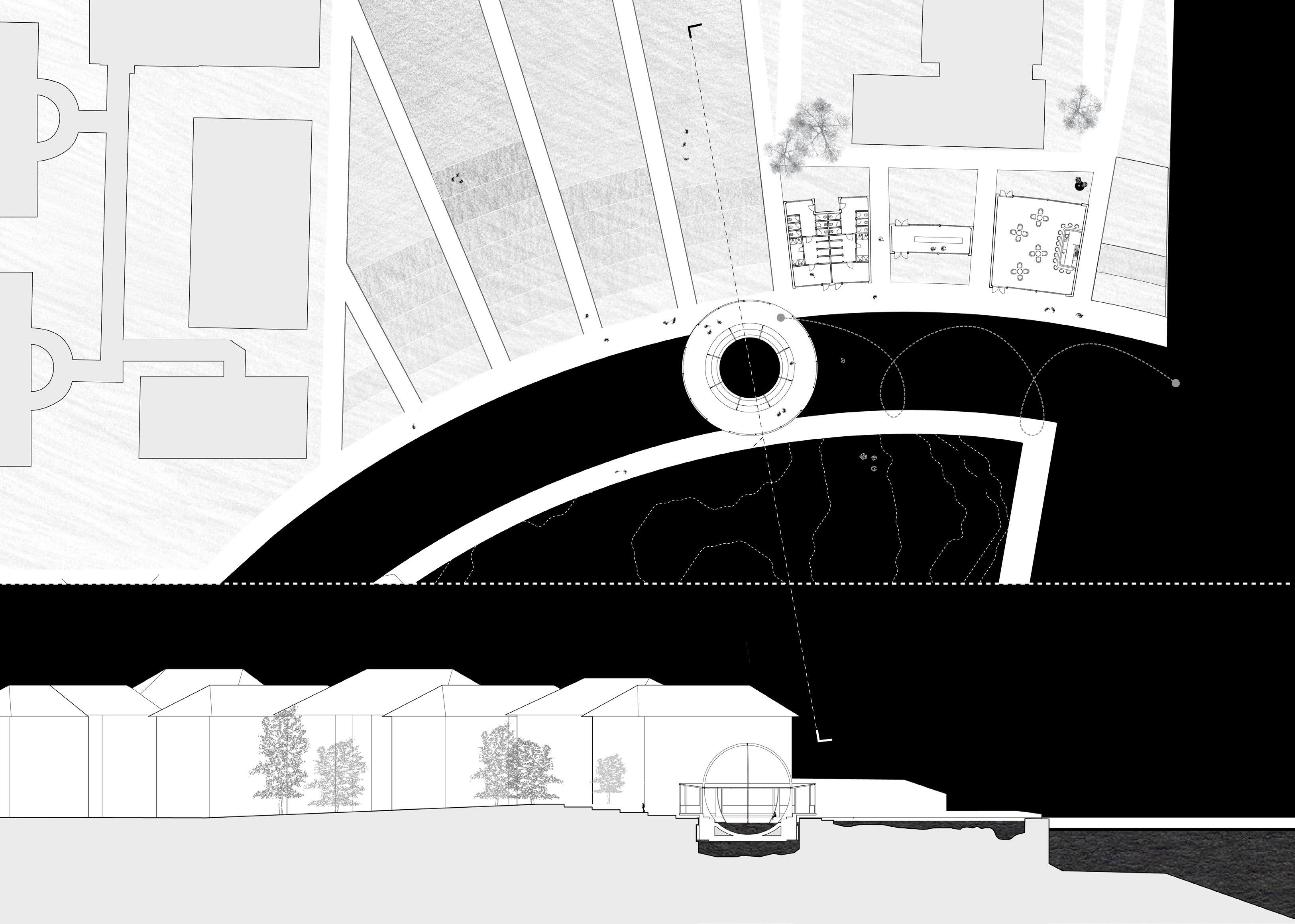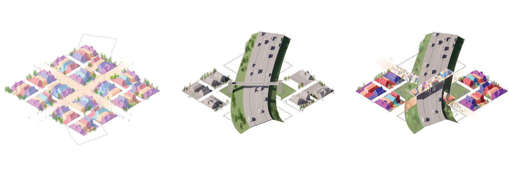 Site plan showing the demolished roads conceptually stitched back together through the intervention