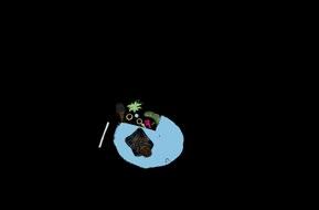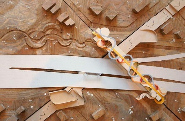 Wade pool: Even though the topography (representing their journey) cannot be seen through the water above, it can be felt as one walks through the pool and feels the land moving beneath.
