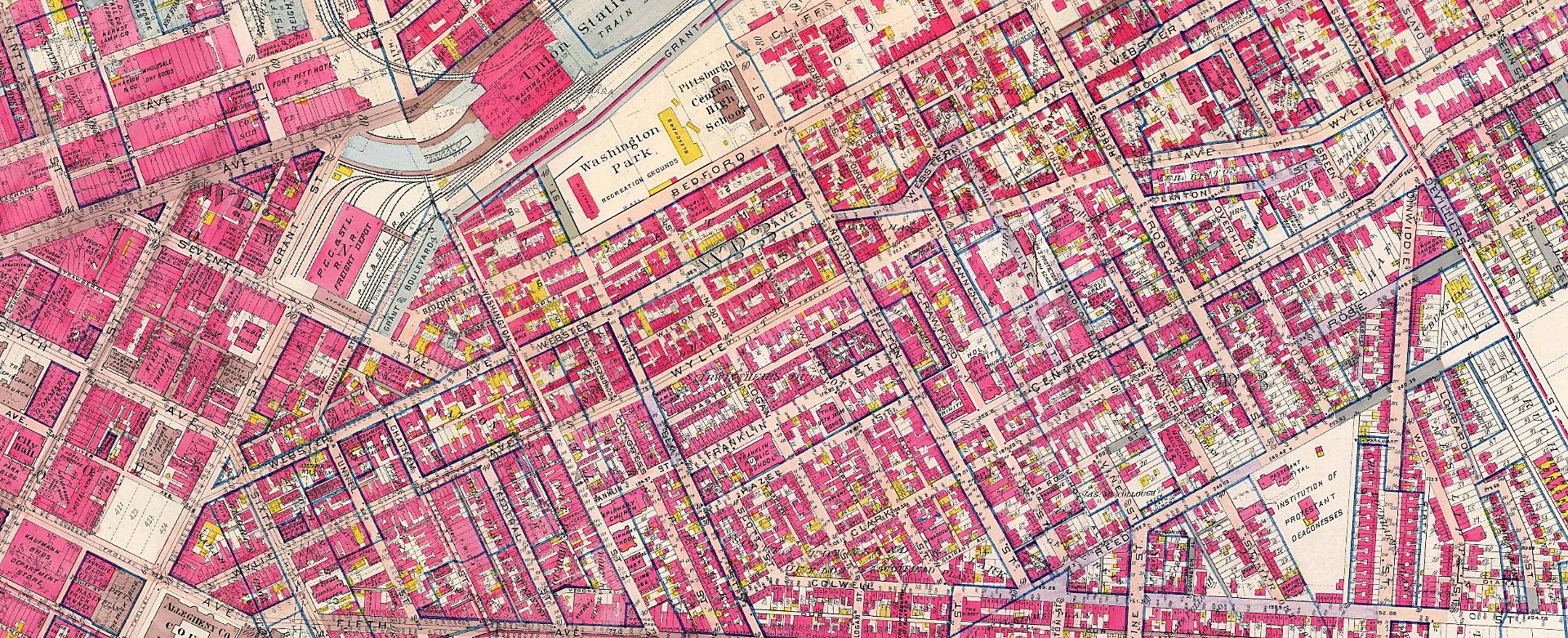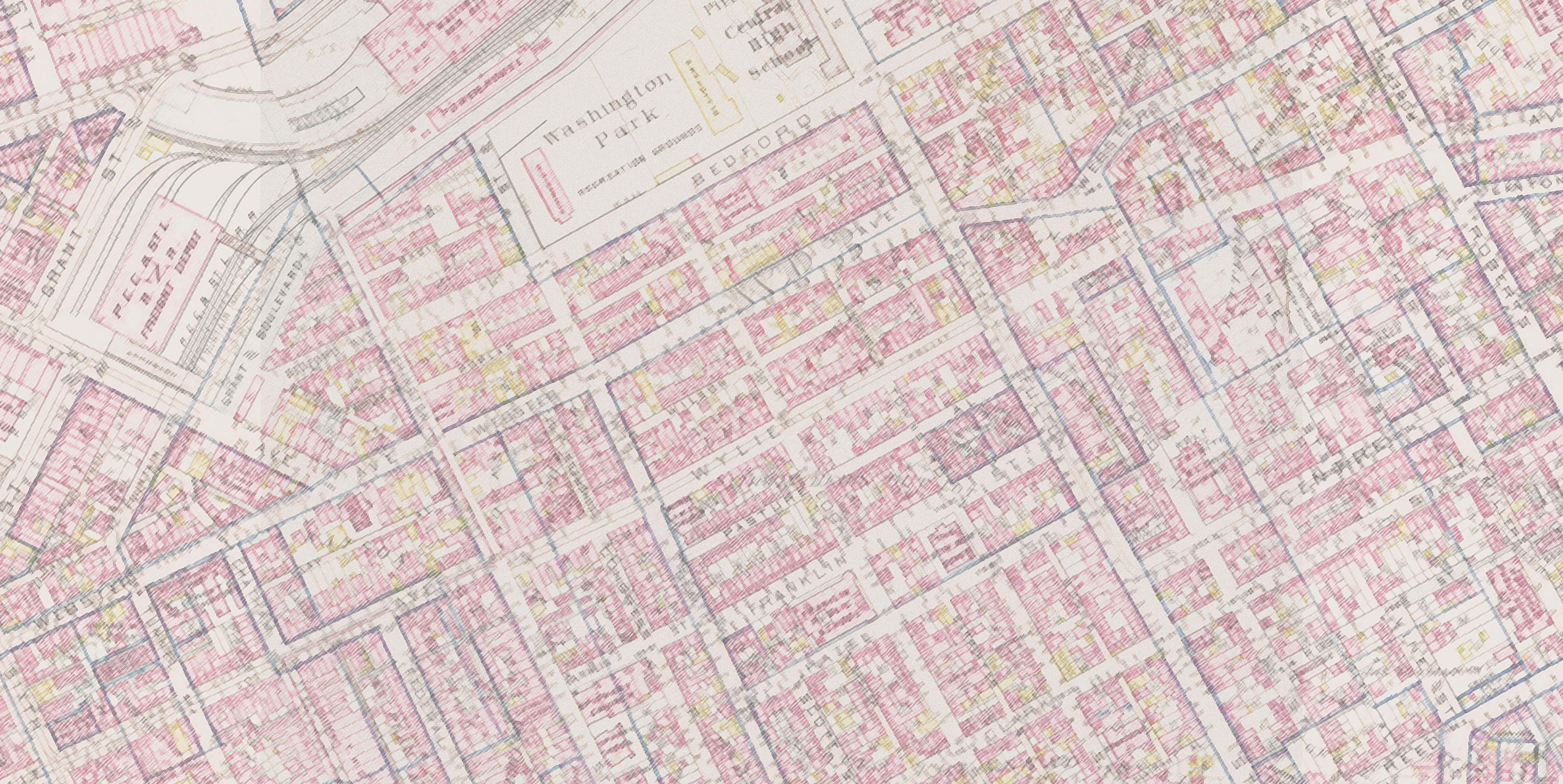 Displacement maps illustrating the hundreds of businesses and streets that were demolished as part of Pittsburgh’s urban renewal practices beginning in the 1950s.