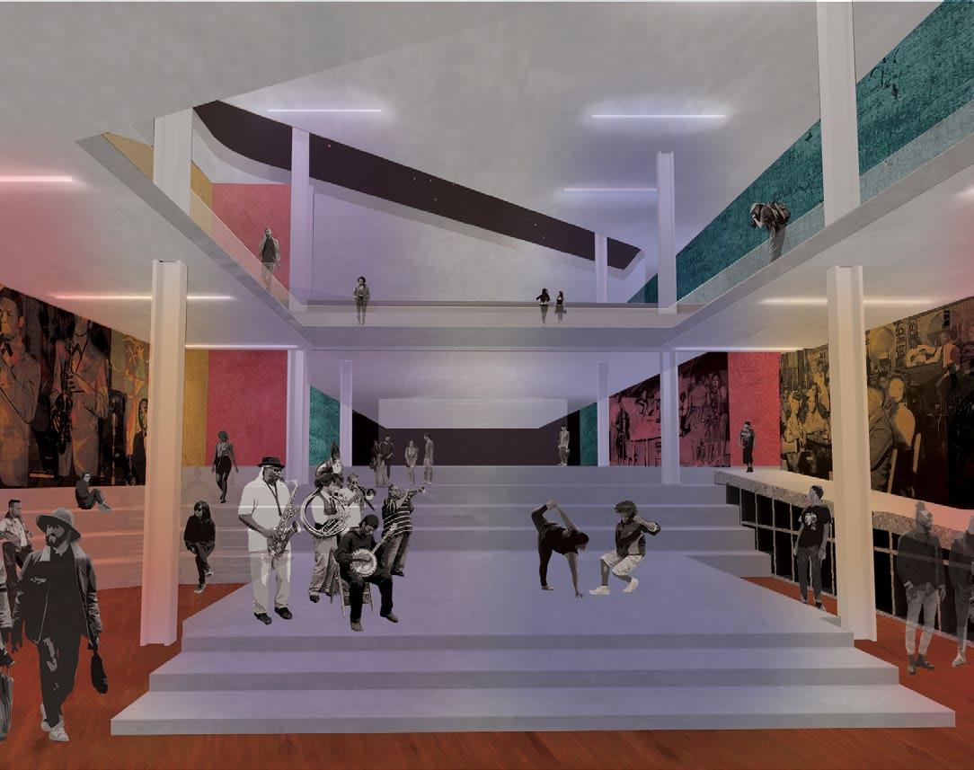 Stitching the roots of the North Nashville corridor back together, Harmonic Counterpoint seeks to restore the once vibrant and interconnected neighborhood surrounding Jefferson St. by visually bringing back roads that were demolished by the construction of I-40. Our new cultural center addresses displacement by reviving programs and businesses that occupied the North Nashville corridor prior to I-40’s construction.