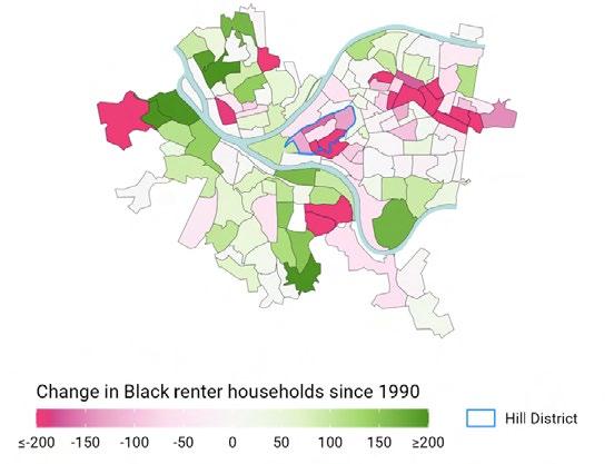 Since 1990 Black renter households decreased across much of Pittsburgh’s predominantly Black neighborhoods like Hill District