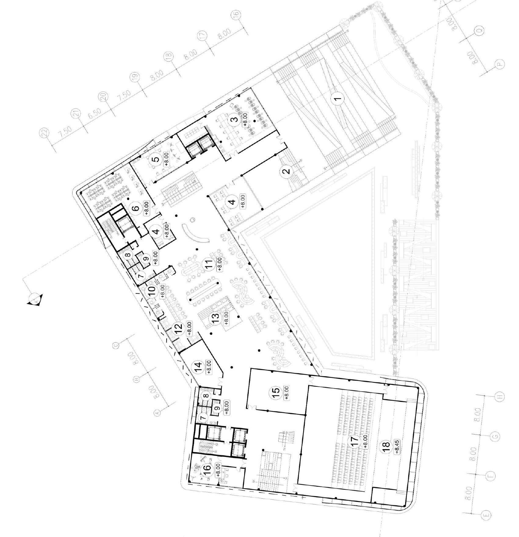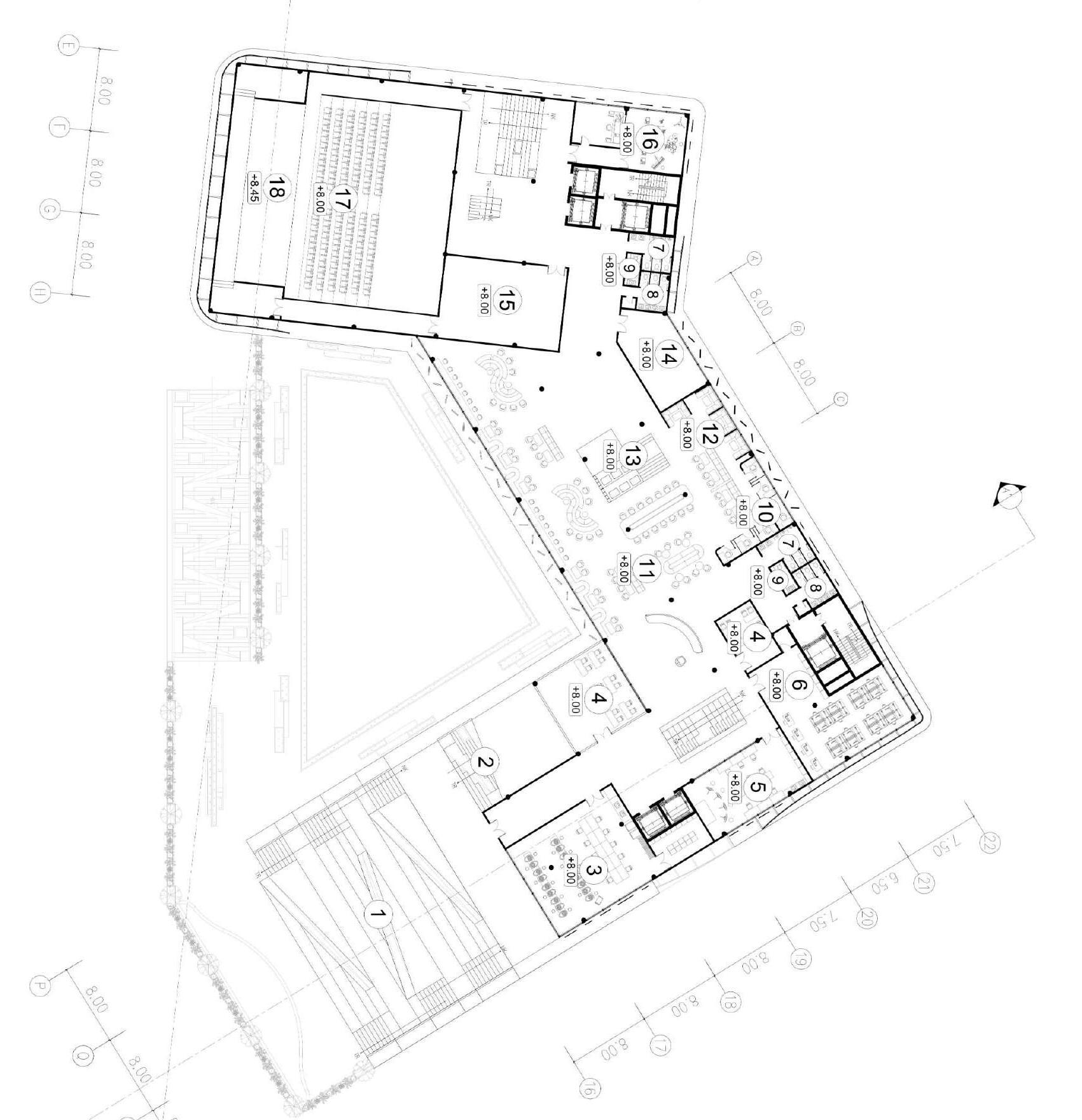 Entrances from all four sides of the street enhance the building’s permeability.