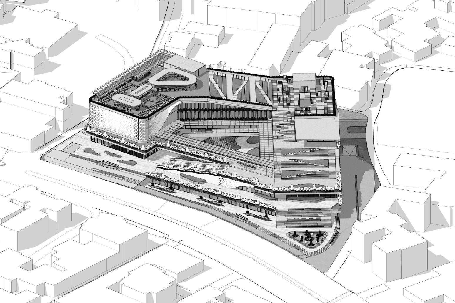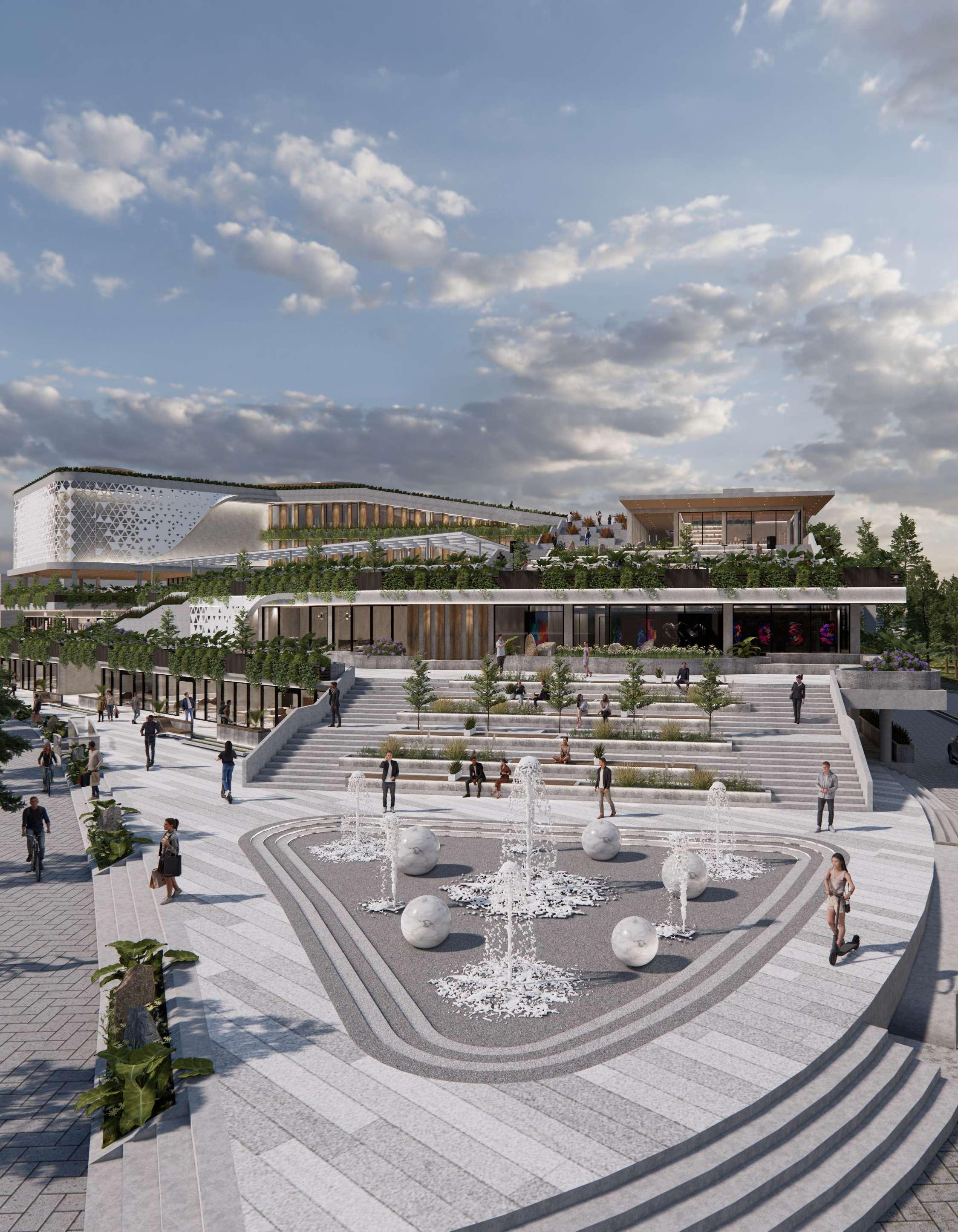 Addition of podium masses on the 2nd and 3rd floors for commercial functions (lifestyle center).