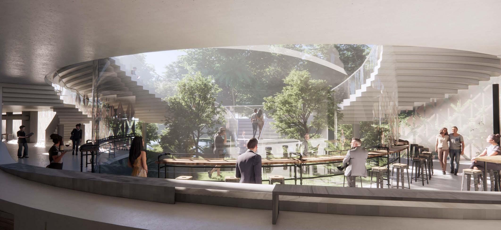 Magarapan features a unique design with a seamless flow from the entrance area to the rooftop. Serving as both an amphitheater and a pathway to a hidden garden with river views, the rooftop enhances visitors spatial experience.