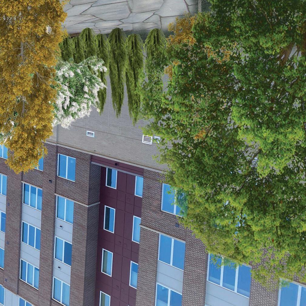 The Dawgwood Hills community is a combination of apartments, houses, retail, dining, and greenspace. This community consists of “the village,” a roundabout of housing seated upon two ponds, “the grove,” a shopping center with second-story apartments, “the dawgwood lodge,” and of course, the dawgwood greenway. Not only is this community inviting and friendly, but it is also accessible and 100% walkable, with only the back side allowing cars and parking for the lodge and village. Everything in this community is connected by walking trails on the greenway and a boardwalk that spans its entirety. This creates a sense of place and wellbeing with its softer, more colorful aesthetic that contrasts with that of the surrounding, more modern development.