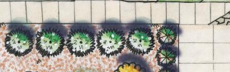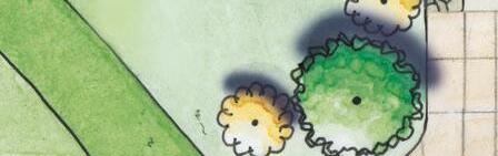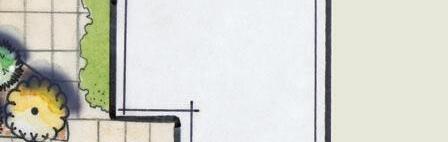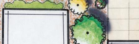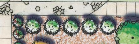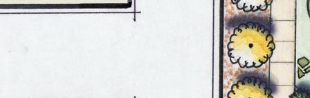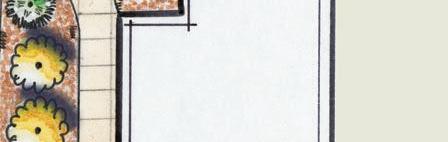 Front yard redesign- the intermingling of textures and colors combined with a wider more open entrance, creates an inviting and interesting facade for the house. /photoshop rendering