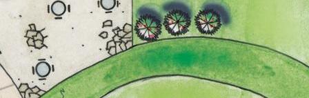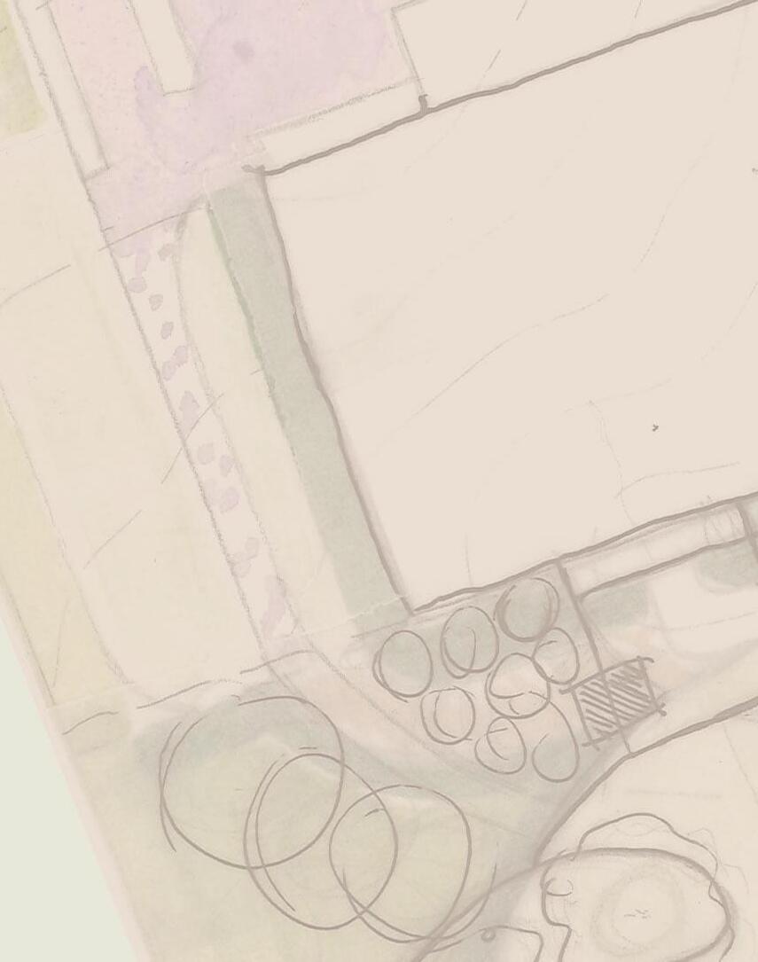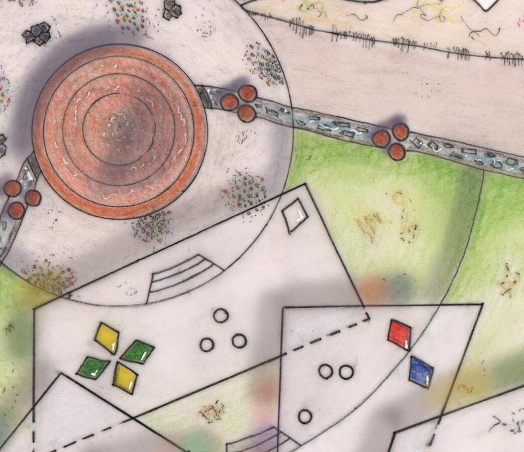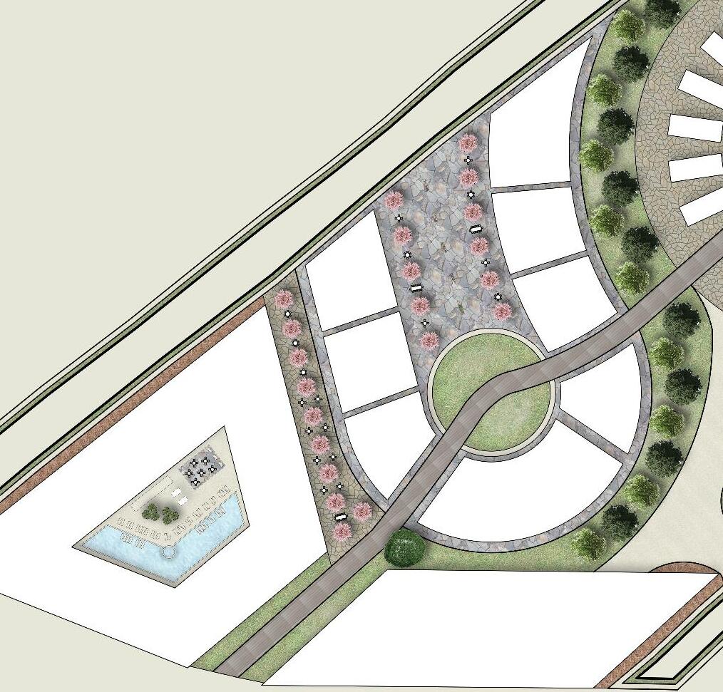 A redesign of an underutilized open space at the University of Georgia using an arc and tangent concept to create movement, interactive gathering areas, and structured flow, incorporating features like fountains, a fire pit, and a coffee cabana to enhance both social and study environments. /spring 2022