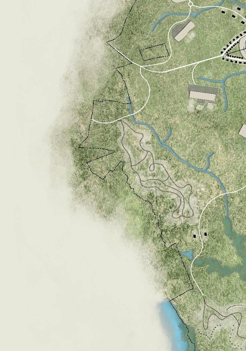 Marsh Hills draws inspiration from the surrounding waters; the communities within this design echo the fluidity and grace of the marshland. Walkable spaces, communal parks, and integrated golf cart paths encourage residents to engage with their environment and each other. Within this site, I have created three main hamlets: Bloom Bay, which features a predominately residential housing corridor; Reedside, which integrates more affordable housing and townhomes; and First Harbor, which largely caters to a younger, first-home owner demographic. These three communities foster a diverse economy and population that provide a place for everyone and anyone within Marsh Hills.