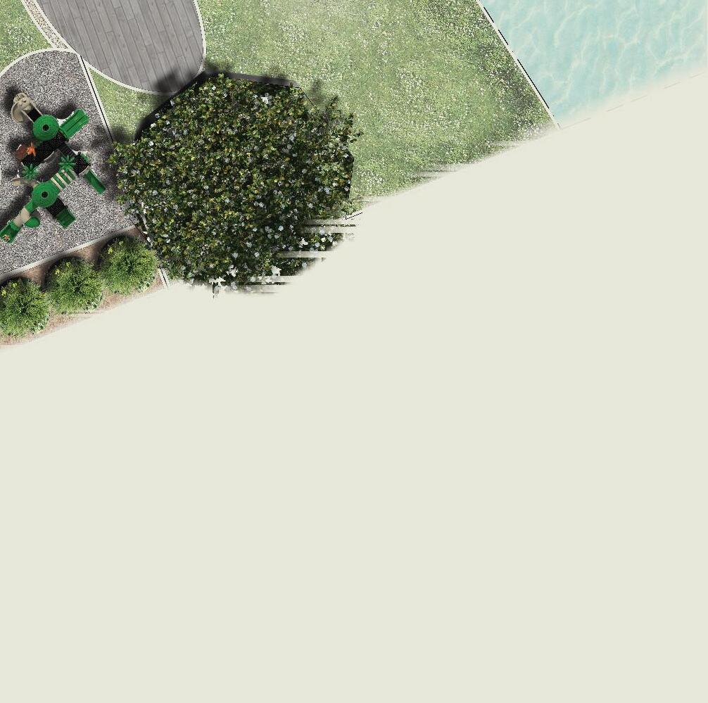 The Sullivan Residence embodies a classic southern ambiance. The goal of this project was to create a space that better suited the family’s lifestyle while emphasizing its southern charm. By providing interest in the front yard, the Sullivans are introduced as an inviting family. In order to create a space that encourages friendly gathering and provides a fun space for children to play, balance was key during the design process. Creating areas where the children can play, as well as keeping the lawn open for other activities, was important. In combination, formal areas, such as an outdoor kitchen dining area and deck bar, give adults a space to relax while being able to keep an eye on their younger children. Seemlessly blending together functionality, aesthetics, and enjoyment is what sets this landscape apart from others.