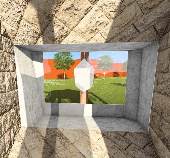 In this Interfaith space, light and water serve as guiding elements, ushering followers of diverse faiths into a shared communal area. Prisms positioned above each entrance direct individuals towards a spiritual journey upon crossing the threshold. Inside, the journey unfolds along pathways of flowing water that weave through the floor. These streams lead to two distinct destinations: an ablution or holy water fountain, and a trio of sacred spaces. Within these sanctuaries, worshippers find solace for prayer or devotion, with small apertures offering glimpses of an exterior fountain. Accommodating up to 60 individuals, the main gathering area is versatile, configurable to suit the needs of worship for any of the three Abrahamic religions. The triangular design of the building harmoniously reflects the essence of the three Abrahamic religions, Judaism, Christianity, and Islam. Each side of the triangle symbolizes one of these faiths, embodying their unique perspectives and teachings.