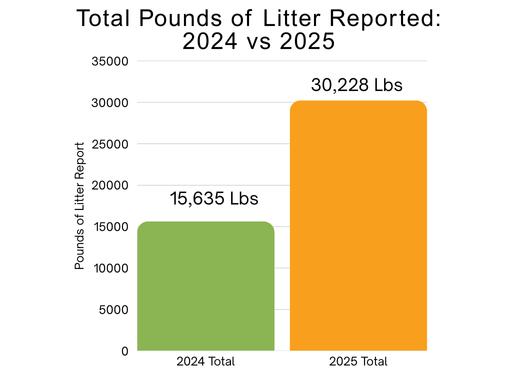 30,228lbs Total Pounds of Litter Reported in 2025 14,593lbs 812 Hours