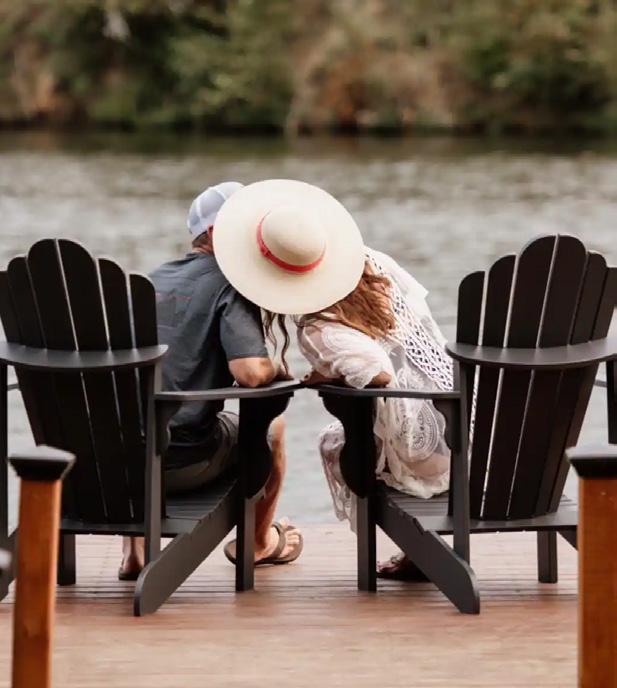 guests the perfect place to relax and reconnect. To complete the experience, she recommends enjoying a burger at Harris Landing, savoring BBQ from Lee’s, and renting a boat to explore the lake.