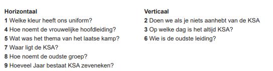 De KSA vindt ALTIJD plaats op ZATERDAG van 13:30 tot 17:00. De activiteiten beginnen stipt om 13:30 dus zorg dat je tijdig bent!