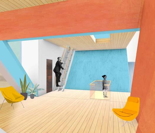 As this was a more creative rather than technical project, ladders replaced stairs and moving platforms were used as elevators. All to try and promote different types of movement.