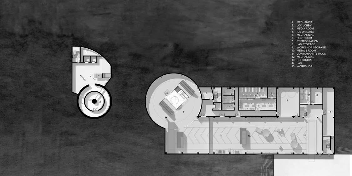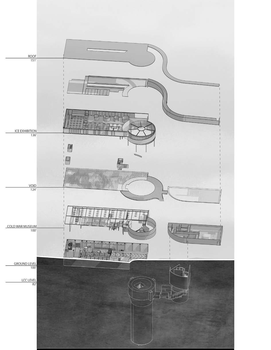 The re-purposing of this space represents a heightened application of historic preservation and adaptive reuse principles. Converting the missile silo into an ice drilling facility offers potential for valuable research addressing the ongoing environmental crisis. Additionally, the proposal includes an exhibition that recounts the site’s history and its role in the cold war era, bridging the past and future. This connection emphasizes how historical contexts inform future endeavors and the social responsibility visitors hold to prevent further environmental crisis.