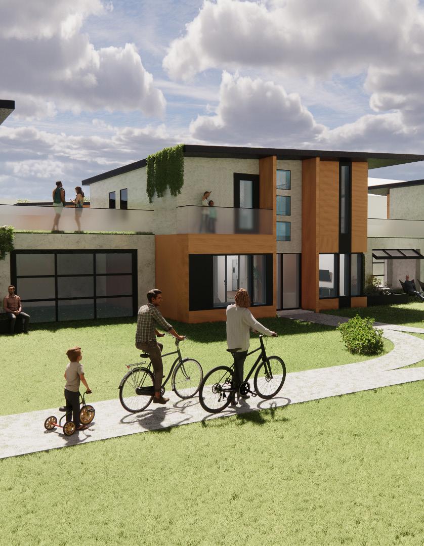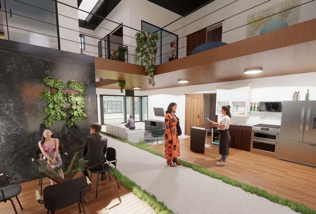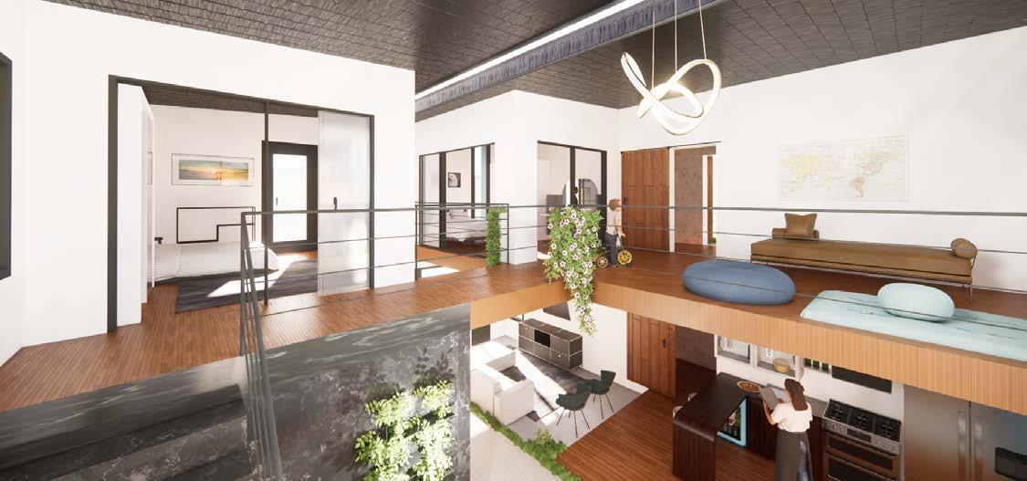 The goal of this project was to create a co-living situation for residents in Wayne, Nebraska. My design of this space centered around biophilic design that enhances human connectivity to nature, promoting well-being and community.