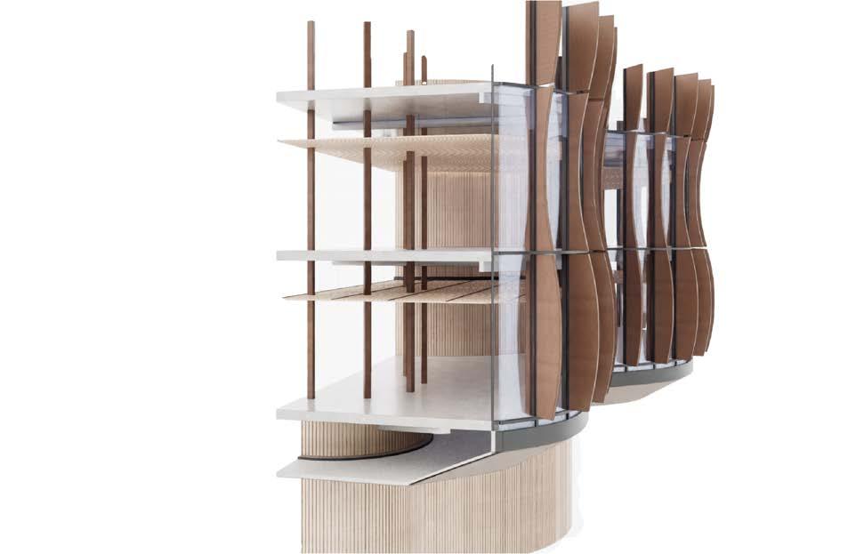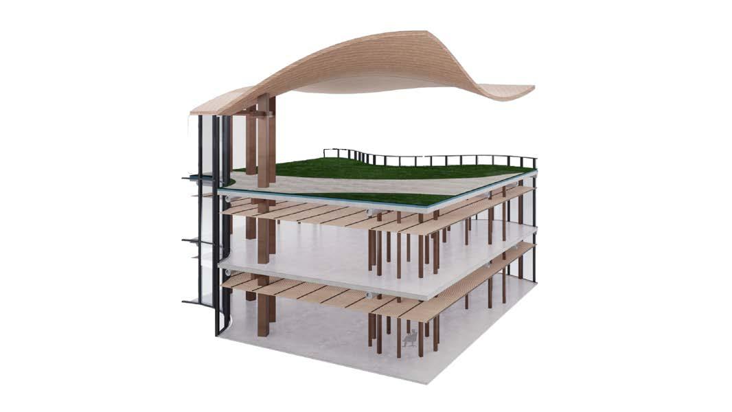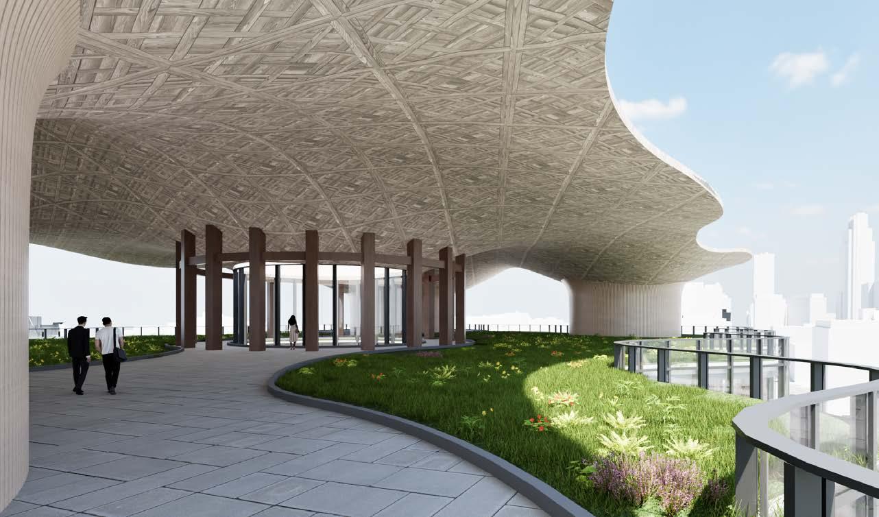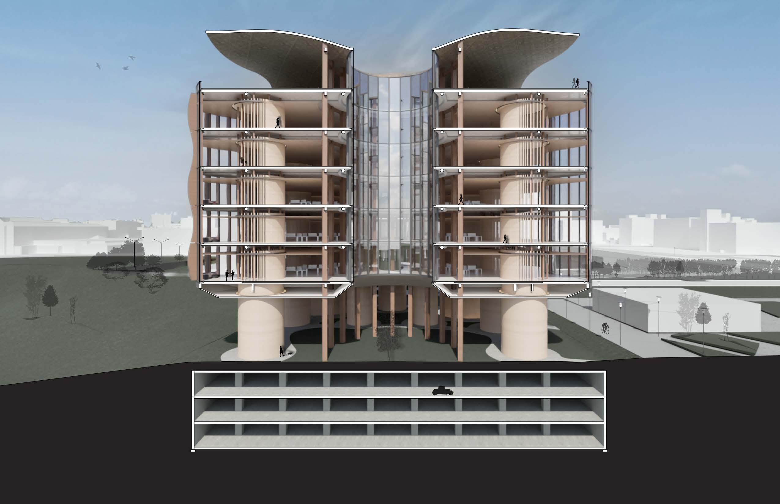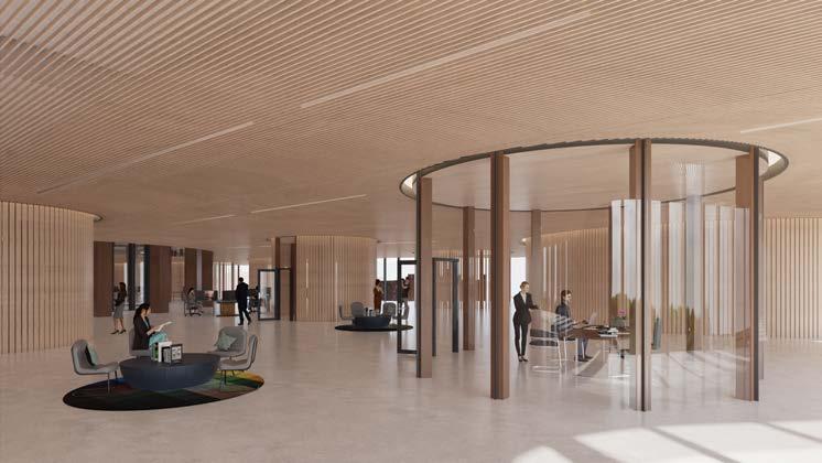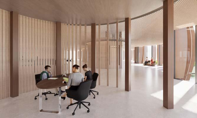 This integration begins at the building’s cores, which serve as structural and conceptual anchors. Like trunks in a forest, these cores provide stability while allowing for increasing lightness and openness as one moves outward from the cores. Balancing privacy with interaction, we introduce open, dynamic spaces that foster vitality and connection. By breaking down the barriers of traditional office design, our approach brings the natural environment into the workplace, enhancing both its atmosphere and functionality.