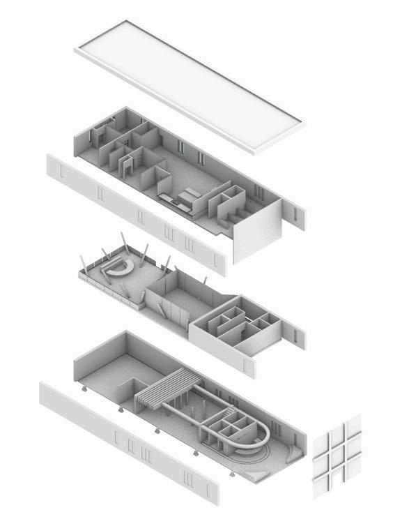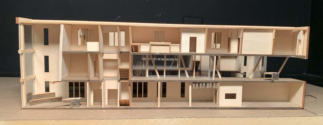 This project was designed entirely based on the rule of thirds and progressions of privacy. More public spaces can be found towards the front of the structure while privacy levels increase towards the back. Each third of the building is intended to have a change in the level of privacy, changing from public to semi-private to private.