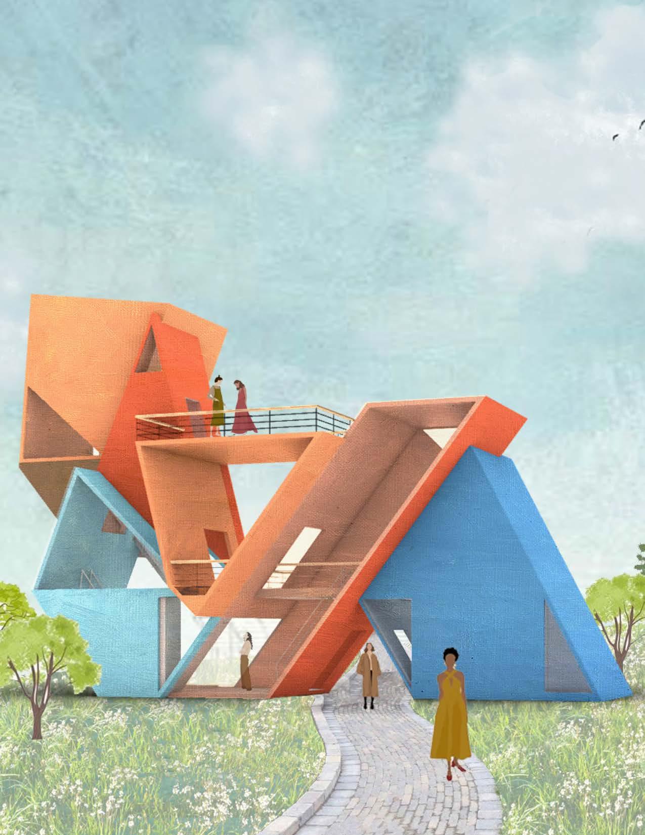 The design of this museum began with an exploration of sculptures and artwork around Lincoln. I was drawn to a sculpture of a woman and used its forms as inspiration, abstracting the shapes of the human body to shape the structure.