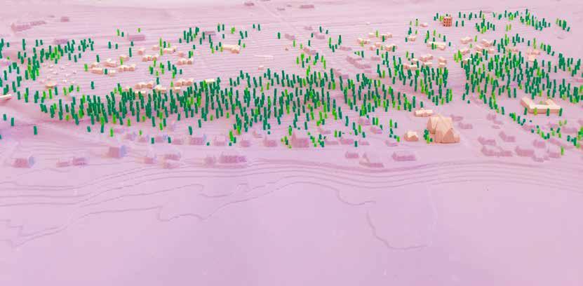 Taking the shape of residential agglomerations placed on two neighboring sites, the eco-hamlet project proposes a multilevel program meant to respond to its residents’ needs and to increase amenities for the general population of Métis. First, working according to a cooperative model of organization at different scales, housing clusters are implemented on both sites and form micro-communities within the hamlet. A mix of housing typologies is introduced — affordable housing, intergenerational housing, single-family housing, and rental units. Second, the sites provide space for additional functions that serve both residents and the community: zones of permaculture/agriculture, an educational center with a workshop space, a restaurant and marketplace, an animal shelter, and parks. Third, the hamlet participates in the seasonal patterns of tourism by providing rental opportunities such as a small campsite and cabins and by connecting the sites to the village through a network of pedestrian and bike paths.