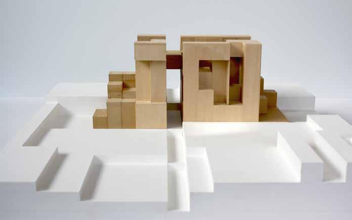 The project experiments with the idea of the restriction in trajectory. On one of its sides, the topography is crossed by a fissure. This gesture makes the terrain rugged and unpredictable, as it would be the case in a natural landscape. As a result, the user is confronted with a path deviation. The cube structure, meant to be climbed up and crossed over, comes along as an element of reconciliation between both sides of the site. From the uneasiness which demands a prior evaluation of the space and imposes a detour, rises the potential for playfulness: a labyrinthic game.