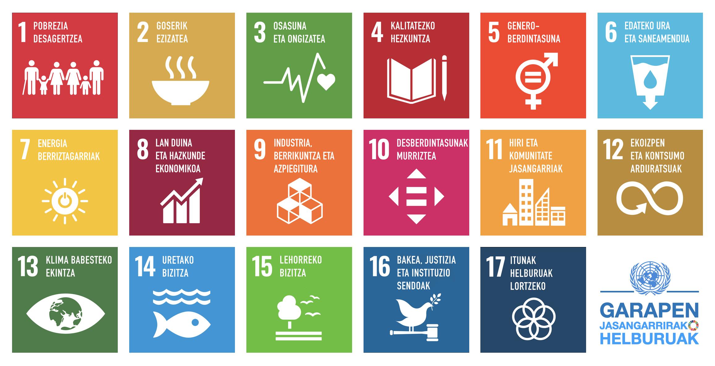 Gure mundua eraldatzea: 2030 Agenda garapen jasangarrirako izenburupean, estatu kideek onartutako azken dokumentuan 17 helburu zehazten dira, Garapen Jasangarrirako Helburuak izenekoak (GJH), eta 169 helmuga.