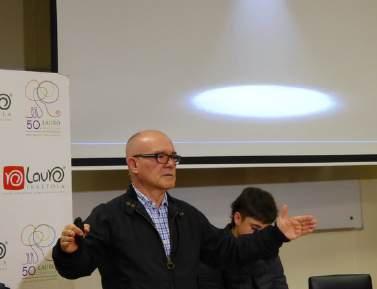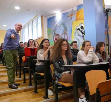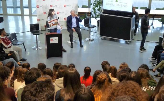 Batxiler 1. mailako ikasleekin bildu zen, ordu eta erdiko hitzaldi tinkoa emanez eta amaieran ikasleen galderei erantzunez. “Estoicismo en tiempos turbulentos” titulupean, bizitzan zehar gertatzen zaizkigunak nola interpretatu eta bizi azaldu du: "Tenéis que aprender a interpretar con sabiduría lo que os pasa en la vida". Gertaerok gure pentsamenduarekin interpretatzen ditugu, eta horiek sortaraziko dizkiguten emozioek gure egunerokoa definituko dute, finean, gure karakterra..