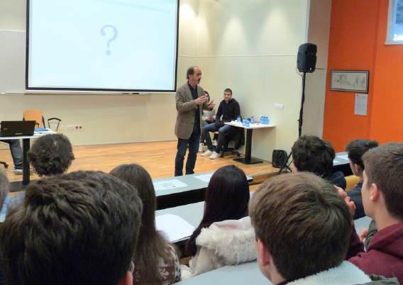 Eneko Knörr eta Jon Uriarte euren ekintzaile ibilbideetako esperientzia Batxilerreko 1. mailako ikasleei kontatzera etorri zitzaizkigun, bai eta etorkizunerako gomendioak ematera ere. Beti ikasten egotearen garrantzia azpimarratu zuten, bai eta gogor lan egitearena ere. Kanpora irten eta beste herrialdeetan gauzak nola egiten diren ikustea ere oinarrizkotzat hartu zuten, baina itzultzeari balioa emanez.