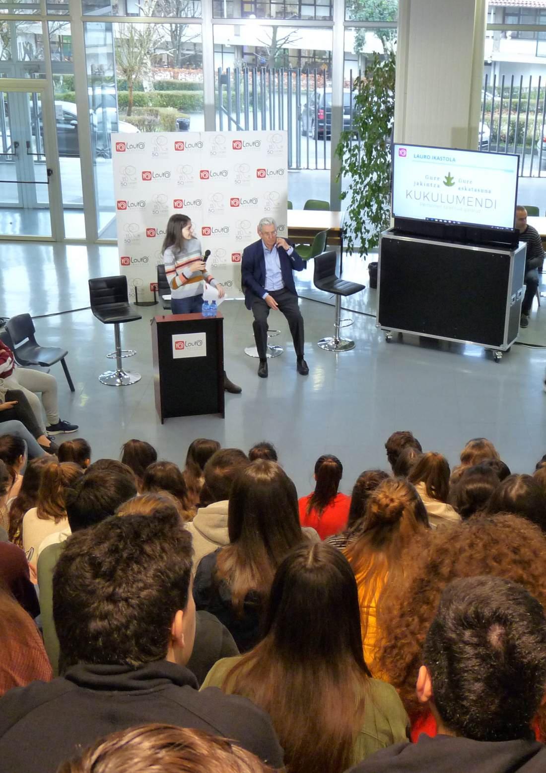 Juan Ignacio Pérez Iglesias, divulgador y escritor, ha impartido en varias ocasiones la conferencia "Los límites del conocimiento (o provisionalmente del conocimiento)" al alumnado de 2º de Bachiller. Tras su exposición, respondió a las preguntas que le formularon los sobre la distribución de letras y ciencias, recomendaciones para estudios posteriores, la importancia del euskera, el uso adecuado de la lengua, etc.