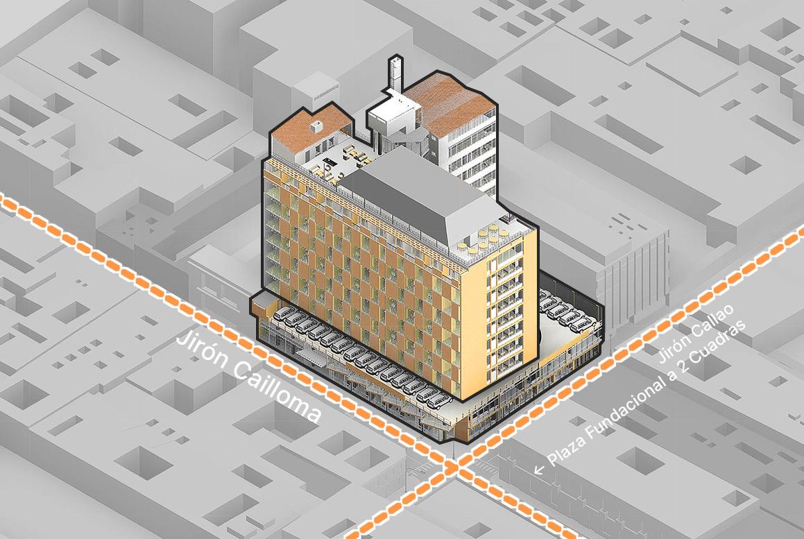 ¿Es este un argumento válido? Por supuesto; no toda obra necesita contextualizarse con su entorno, la mixtura es necesaria, y representa claramente las rugosidades y estratos de una sociedad creciente; sobre todo con una proyección a futuro, percibiendo a Lima como una pronta metrópolis en conjunto con una economía rampante. Es necesario para crear un lugar, y no un no-lugar. Generar el trasfondo y contexto que dé razón y motivo a los espacios que creamos. Por esto el proyecto se ubica a pocas cuadras de la plaza de fundación de Lima, y comparte su espacio con edificios de mucha mayor vejez que este.