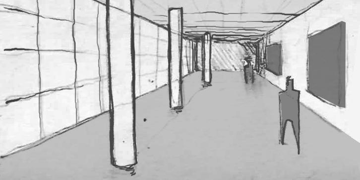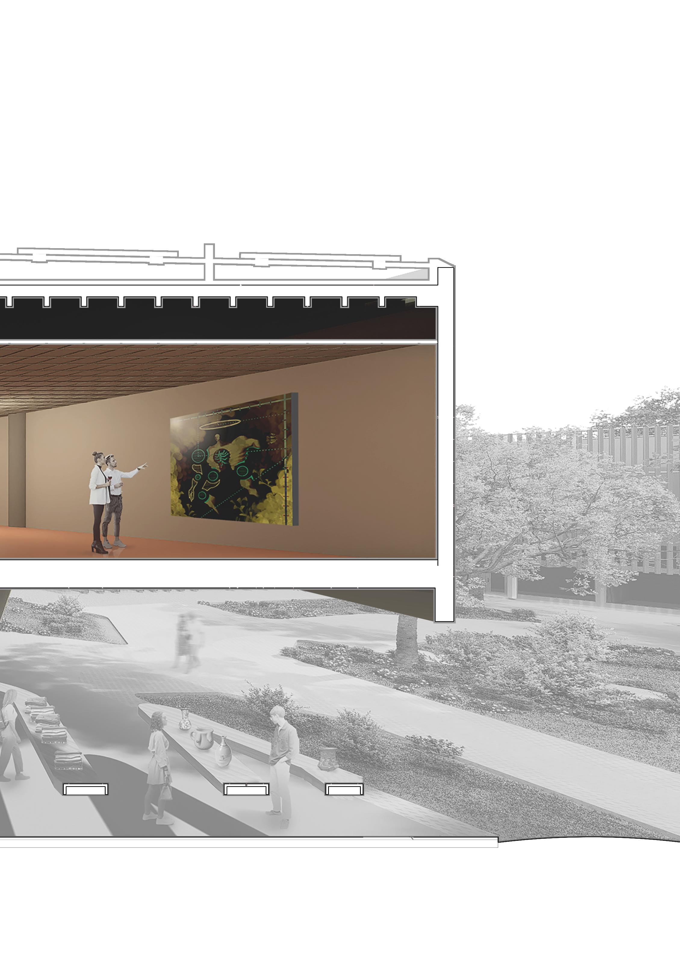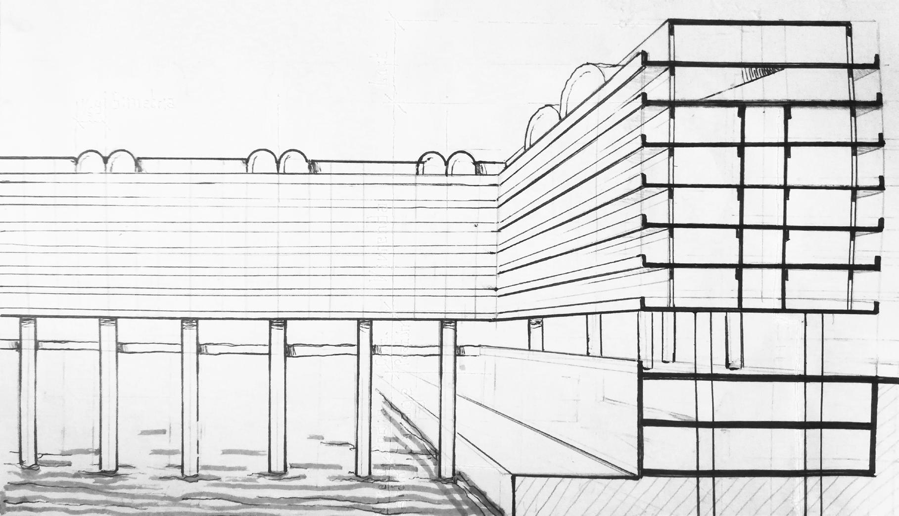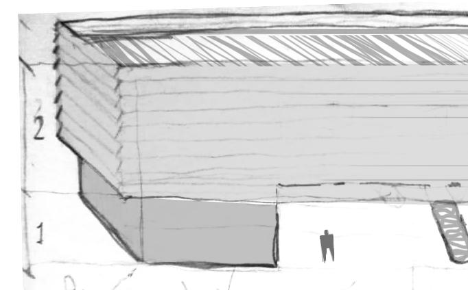 along the CAD elevation. Showing the true proportions and textures of the oratorium.