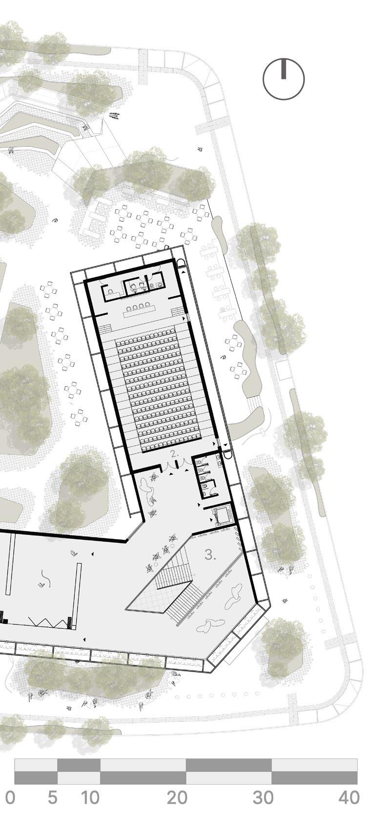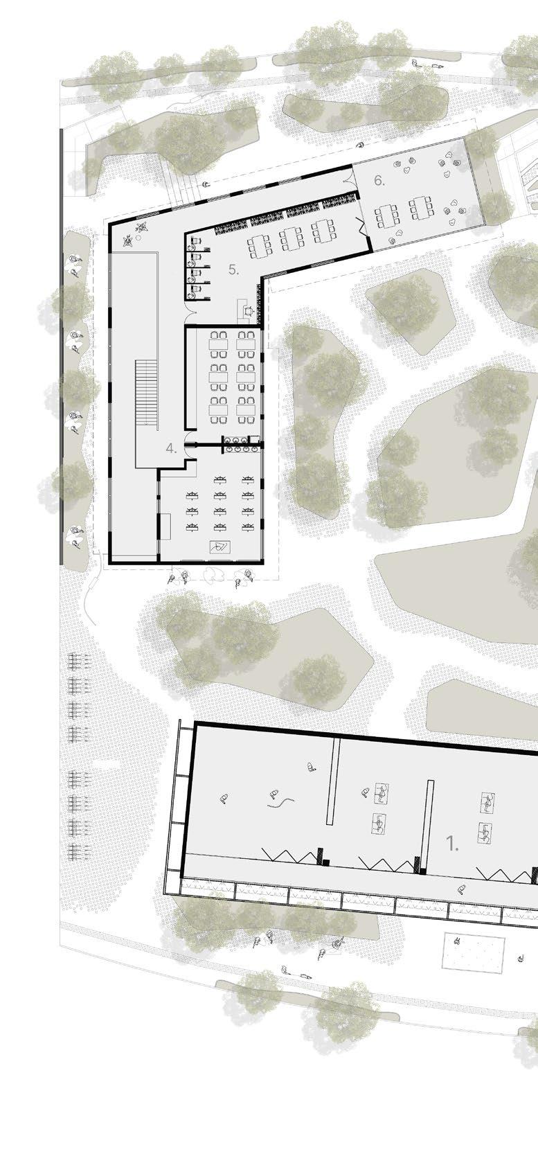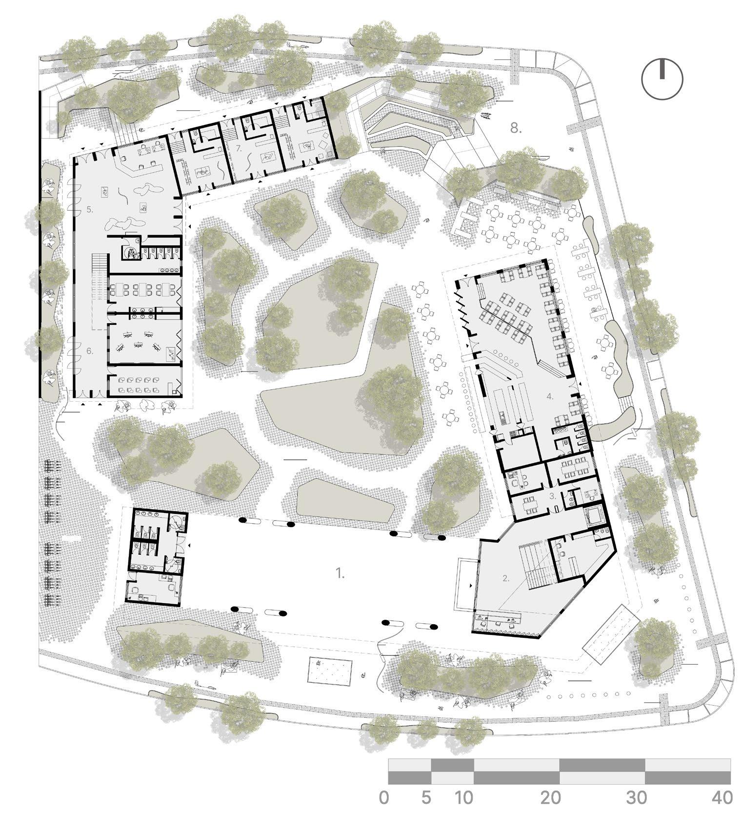 1. Open-Plan / Informal Commerce 2. Entrance Hall 3. Administration 4. Restaurant 5. Reception 6.