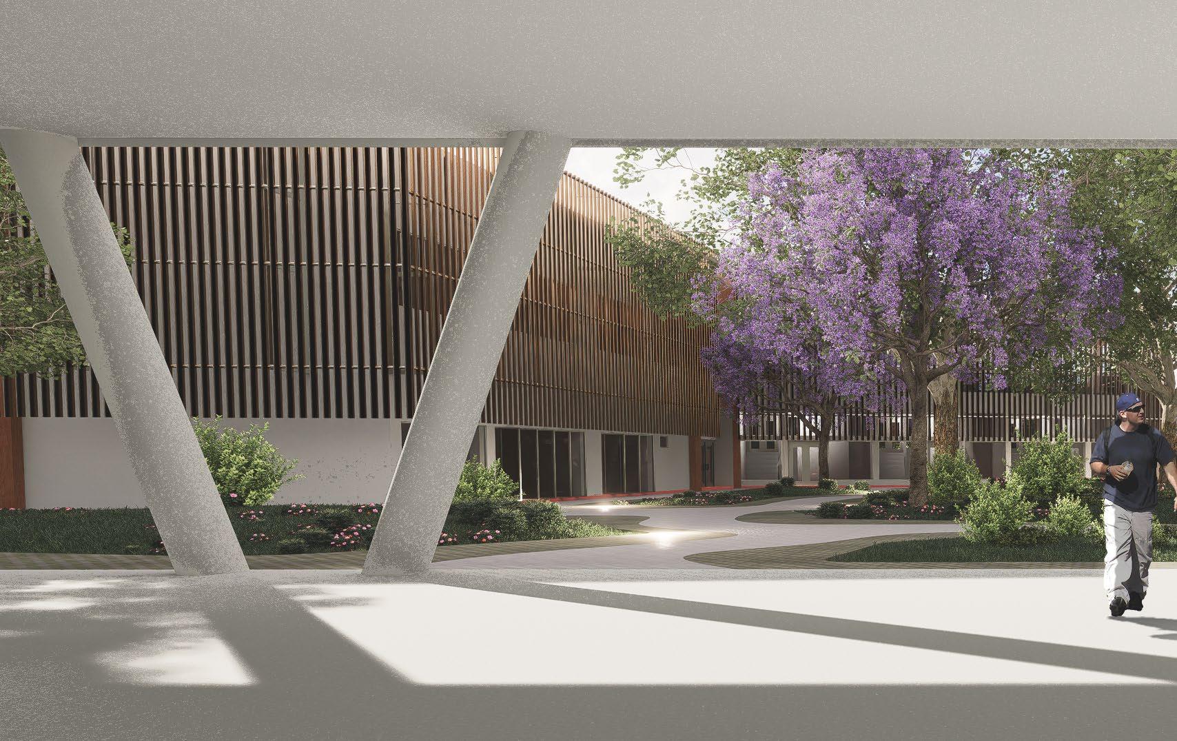The south crystal facade, reflects the urban and natural enviroment of the project, in such a way that the building does not disrupt the existing landscape.