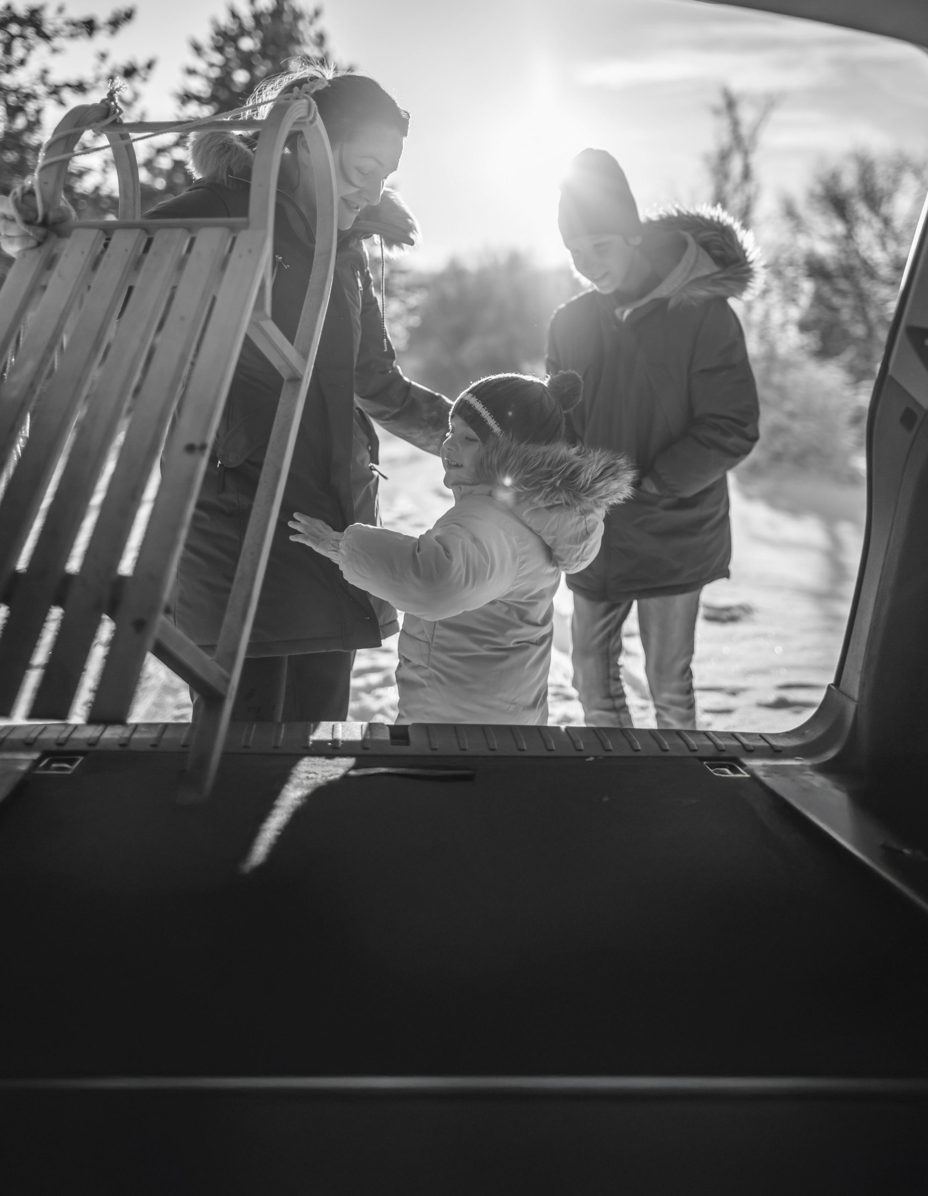 When it came to cargo management in the ID. Buzz, Volkswagen got creative. It starts with a parcel shelf with two collapsable bins behind the thirdrow seats. Using the bins will make shopping a much more manageable task. Remove the parcel shelf and the bins, and then you can remove the third-row seats by rolling them out. Don’t worry — they’re easy to replace by rolling them back into place.