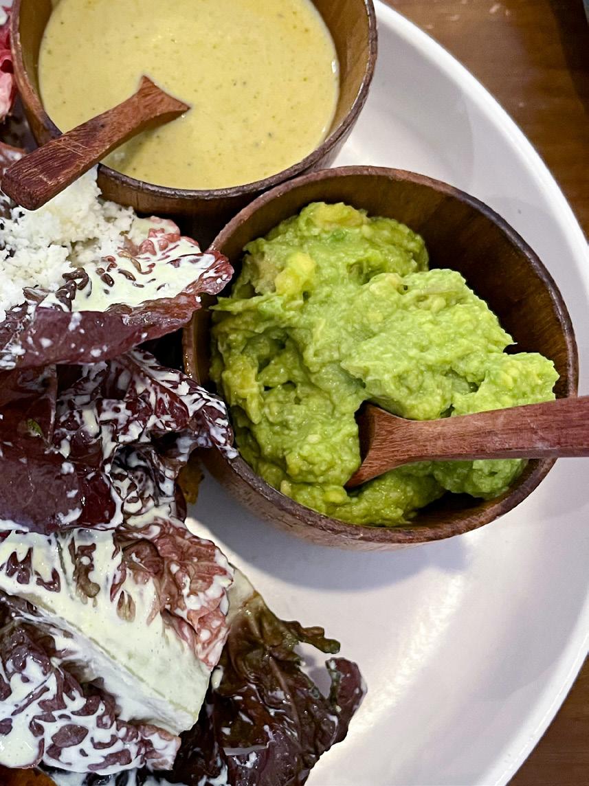 Cocktails are inventive and right on the money, including my grapefruit-forward Palomina ($14). To accompany them, our tour guide — er, server — steered us well when suggesting as a starter the aguachile de sandia ($14) from the Snacks list, which leads off with guacamole (adding crickets is optional) and ends with quesabirria, the beefy menu staple, for which I’ll certainly return. The entire list represents intricate, thoughtfully created items of fine-dining quality to enjoy in a cheery, upbeat setting.