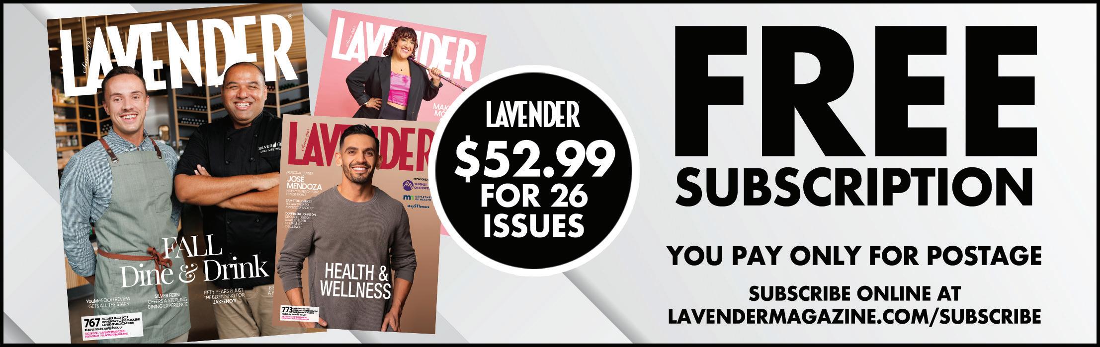 For our Privacy Policy, go to LavenderMagazine.com/resources/ privacy-policy