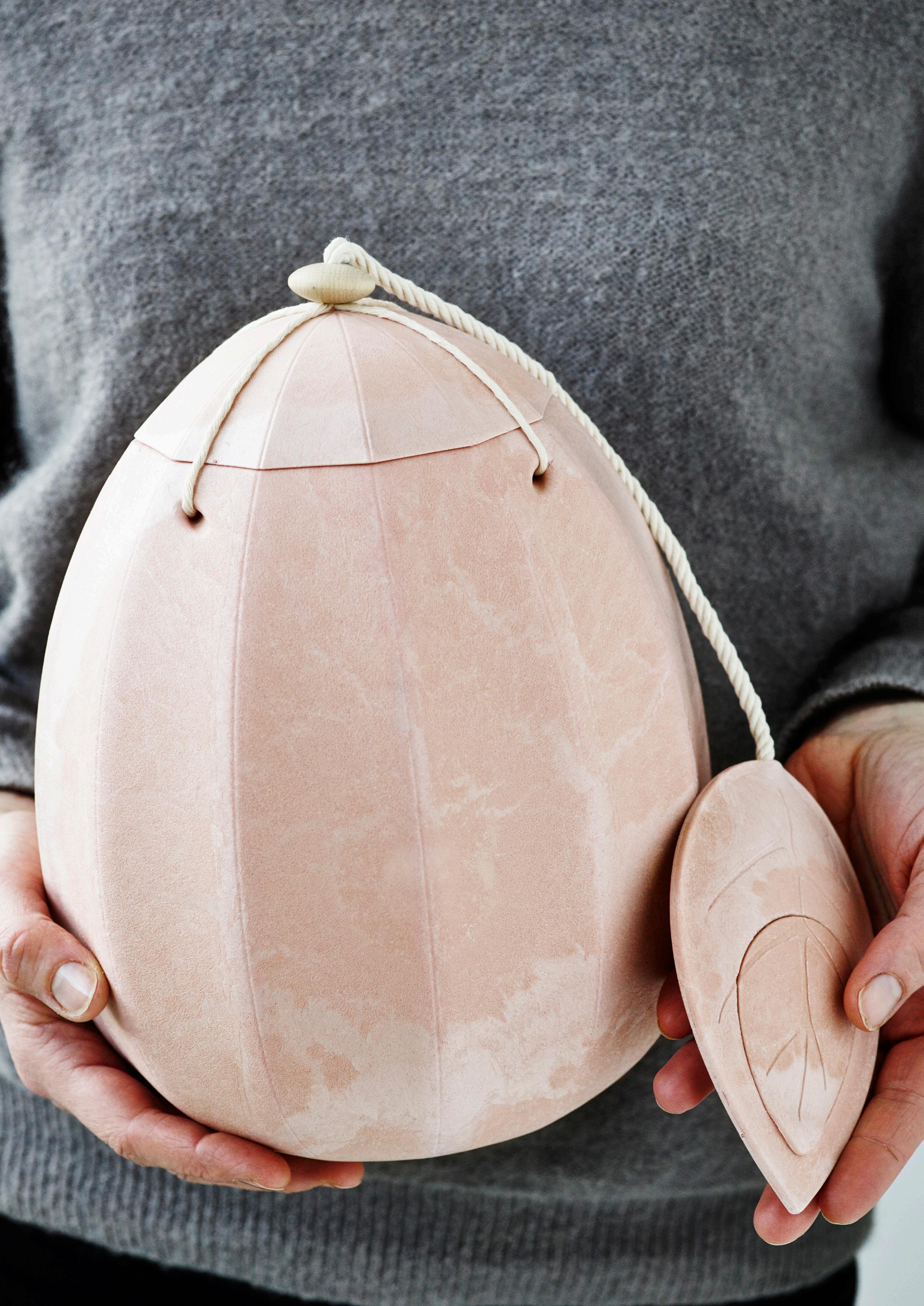 Stående urndekoration i rosa och gröna toner. Innehåller rosor, lejongap, nyponkvist och murgröna. Kombinera gärna med band.