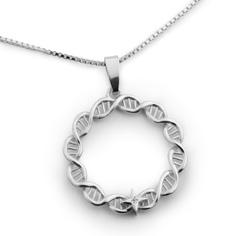 Schalins designar även minneshalsbanden. Här är det själva hänget du får – kedja medföljer alltså inte – i silver och med DNA:t tydligt placerat. Halsbanden med gravyr kan beställas i både silver och guld samt att du kan lägga till upp till 30 extra tecken.