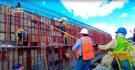 ga-Calkiní, avanza el li bramiento Campeche con armado de estruc turas y conformación de terraplén. Cerca de ahí, en el Víaducto de la Olla, sigue el levantamiento de pilotes y colado de ba