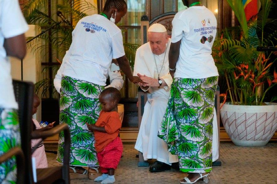 El papa Francisco se reunió con víctimas de violencia en el este del a República Democrática del Congo ten atención a la voz de Dios, que los llama a la conversión y escuchen la voz de su conciencia: hagan callar las armas, pongan fin a la guerra. ¡Basta! ¡Basta de enriquecerse a costa de los más débiles, basta de enriquecerse con recursos y dinero manchado de sangre!”, clamó Francisco. El pontífice se declaró “indignado” por “la explotación