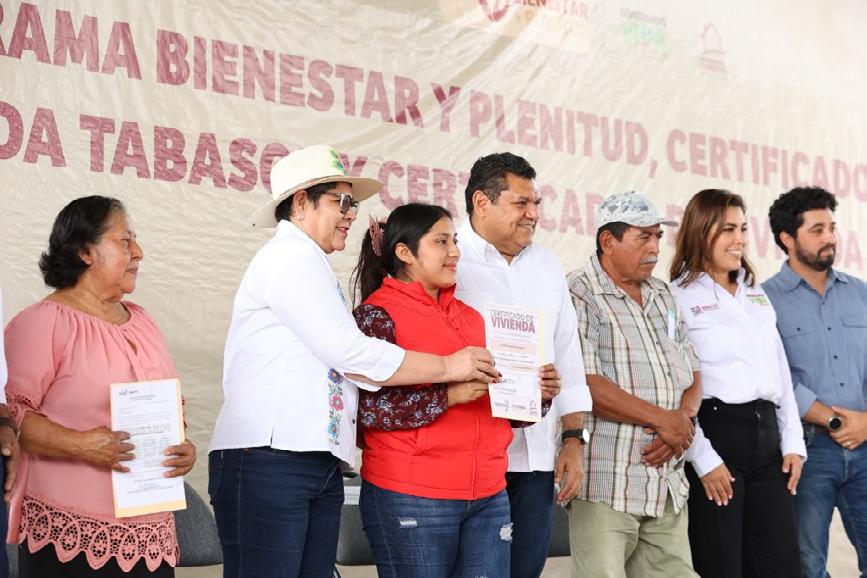 Tras realizar la entrega de 100 certificados del programa Viviendas del Bienestar “Construyendo Esperanzas”, afirmó que conjuntamente con la administración de la presidenta Claudia Sheinbaum Pardo, se favorecerá con una vivienda digna a 64 mil 500 familias tabasqueñas, de las que 20 mil serán construidas por el Gobierno del Pueblo, cuyas escrituras saldrán a nombre de las jefas de familia.