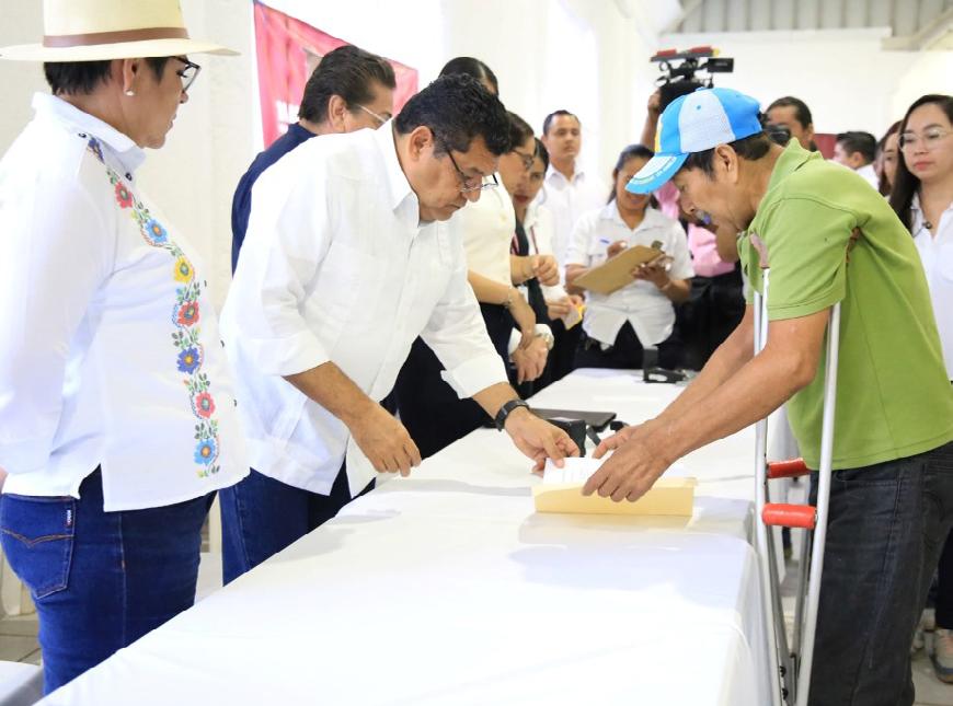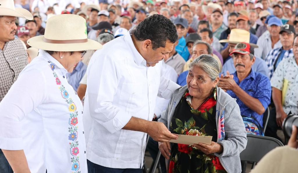 Con los programas Sembrando Vida estatal, de Vivienda para el Bienestar y las pensiones para varones de 63 y 64 años de “Plenitud y Bienestar”, el Gobierno del Pueblo contribuirá a fortalecer la economía popular de abajo hacia arriba en las comunidades y acortará las brechas de desigualdad, afirmó el Gobernador Javier May Rodríguez, al entregar en Balancán 1,001 apoyos correspondientes a estas tres iniciativas.