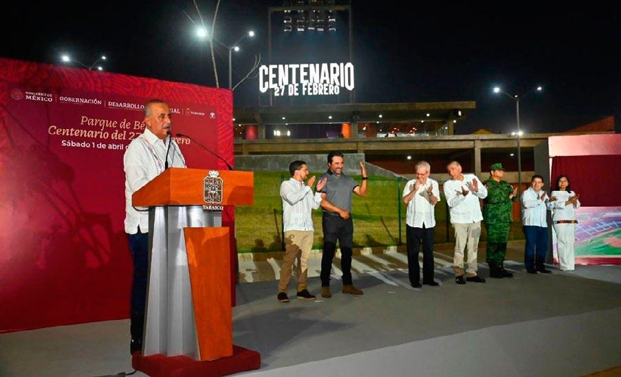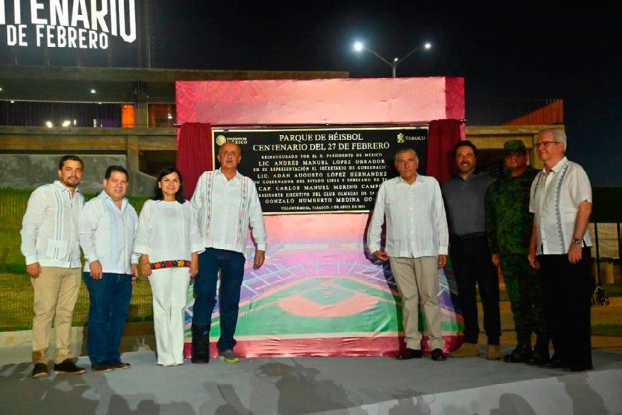 En representación del presidente, Andrés Manuel López Obrador, el titular de Segob, Adán Augusto López Hernández, inaugura el nuevo estadio Centenario 27 de Febrero, acompañado del gobernador Carlos Manuel Merino Campos, de la alcaldesa de Centro, Yolanda Osuna Huerta y de ‘glorias’ del beisbol mexicano.