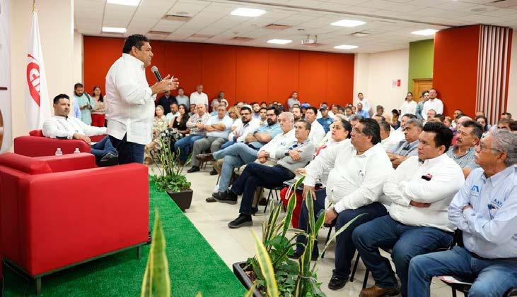 Este lunes empresarios y representantes de compañías constructoras adheridas a la CMIC se reunieron con el candidato de Morena, PVEM y PT a la gubernatura, Javier May Rodríguez. Al
